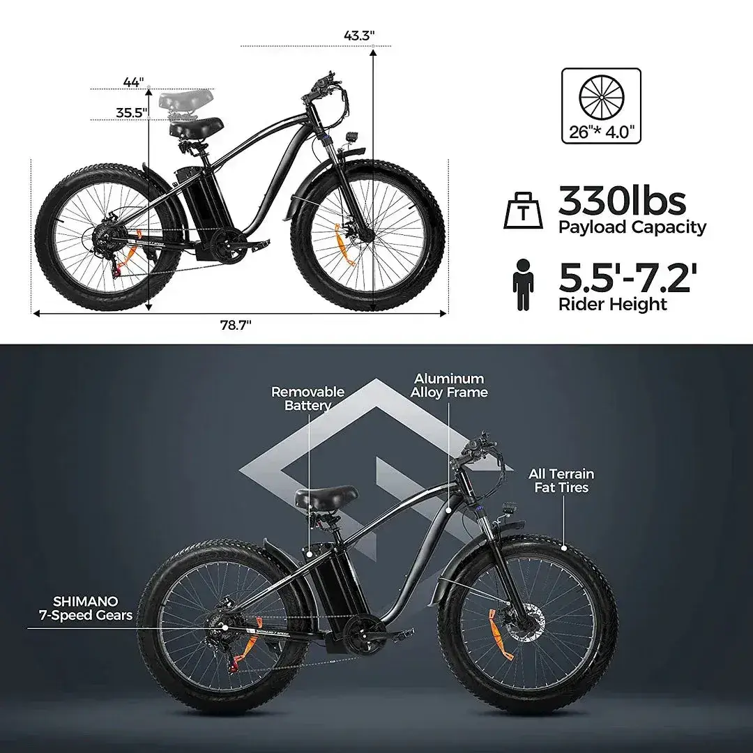 26 Inch Adult 3 Wheel Electric Tricycle with Basket, Fat Tires,7 Speeds,350W Powerful Motor, 36V 10Ah Removable Battery – Dark Gray