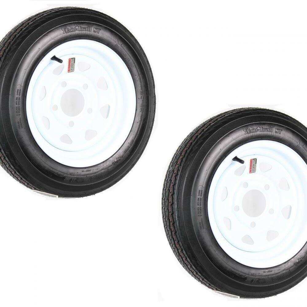 2-pk Trailer Tire on Rim 480-12 4.80-12 12 in. LRB 5 Hole White Spoke Stripe