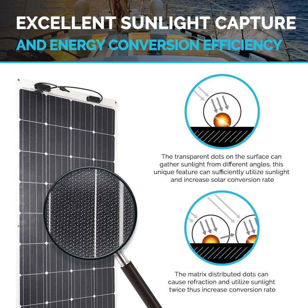- 【Extremely Flexible】With a flex range of up to 248 degrees, this panel is capable of meeting a wide range of applications where standard panels can be inconvenient to mount, such as on the curved roof of an airstream.