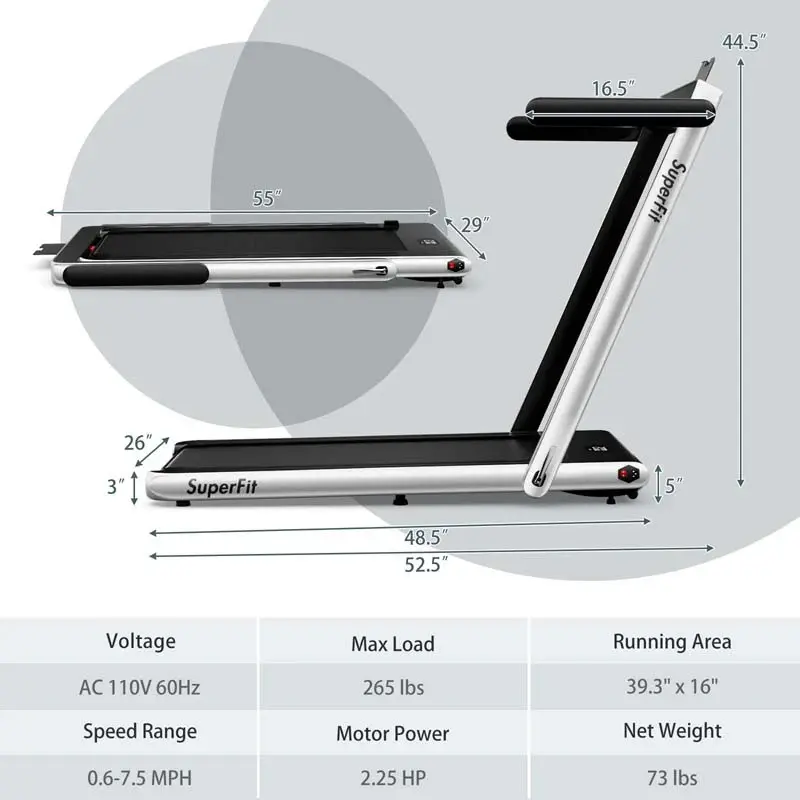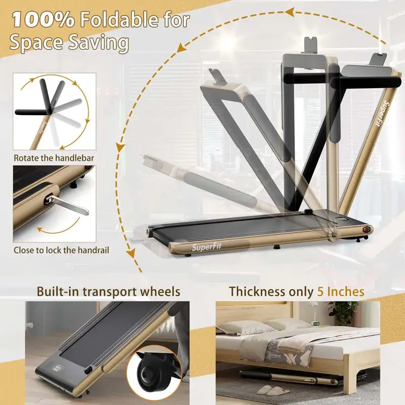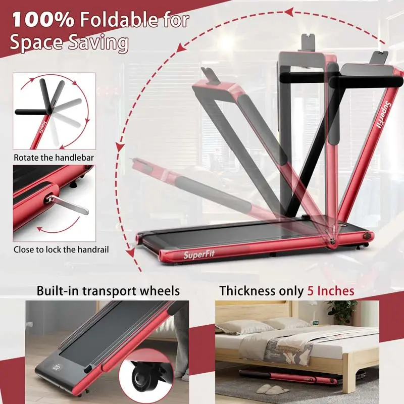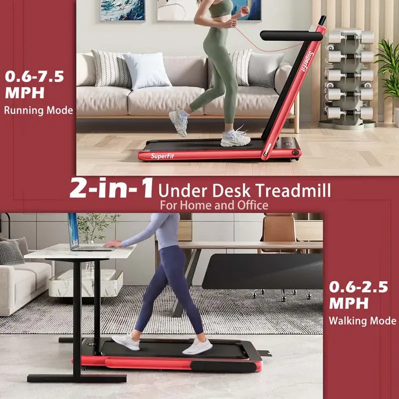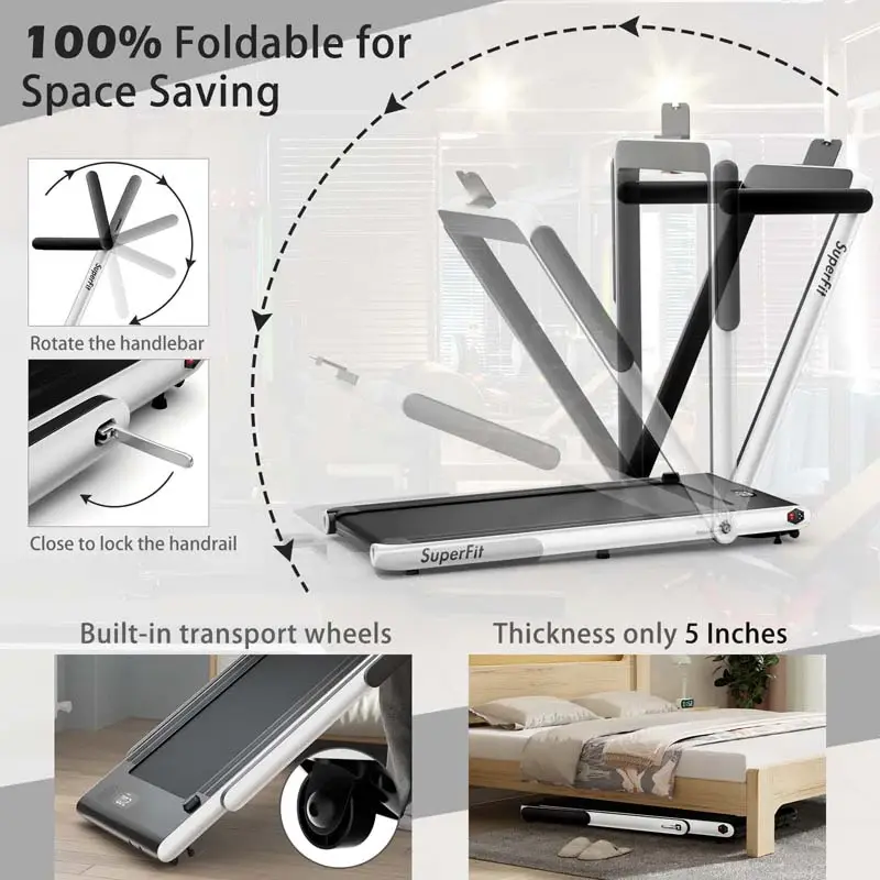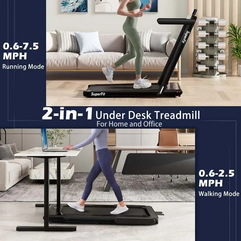 • 2.5HP 2-in-1 Folding Under Desk Treadmill with Speaker APP Remote Control, Portable Walking Jogging Machine for Home Gym Office