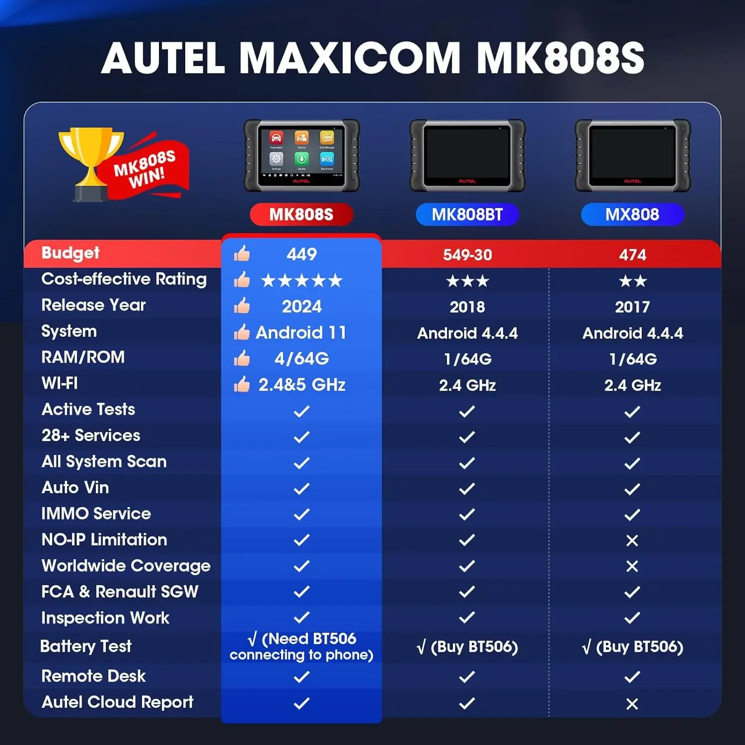 • 2024 Bidirectional Tool as MK808BT Pro MX808S M808Z, Function as MaxiCheck MX900, Active Test, All System Diagnose, Injector Coding.