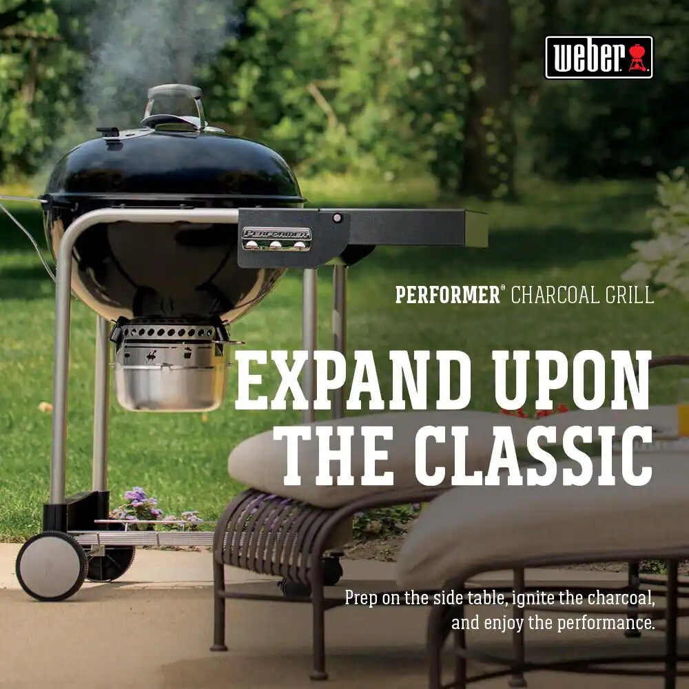 • 22 in. Performer Charcoal Grill in Black with Built-In Thermometer and Storage Rack