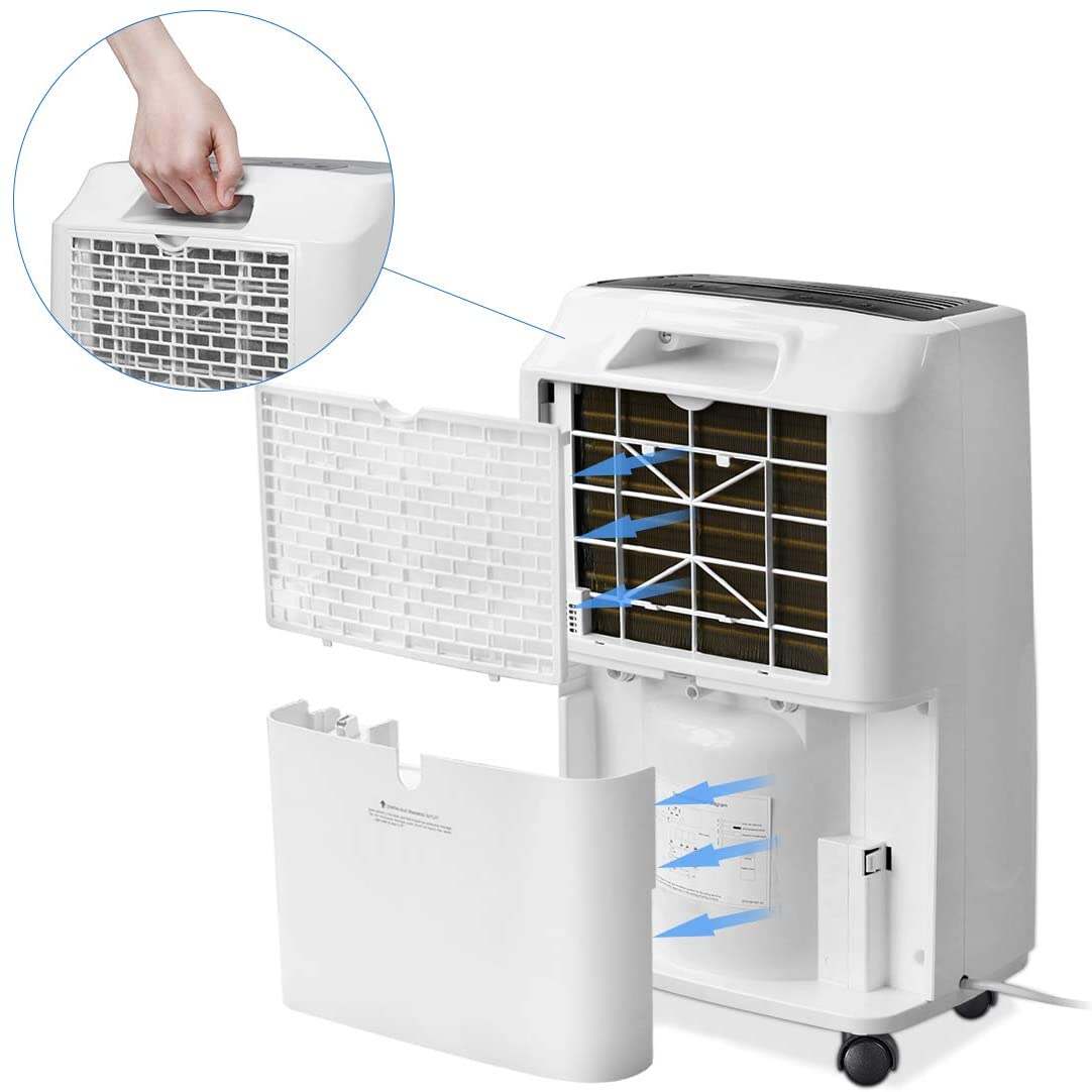 EASY TO MOVE AND CARRY. Many mini dehumidifiers are portable but the dehumidification capacity is not ideal, however, many dehumidifiers with better capacity are clunky and hard to move. We took this into full consideration when designing. The convenient built-in wheels and handles make our dehumidifier so easy to move from one room to another. It guarantees efficient dehumidification while being as easy to carry as many mini dehumidifiers. So good!