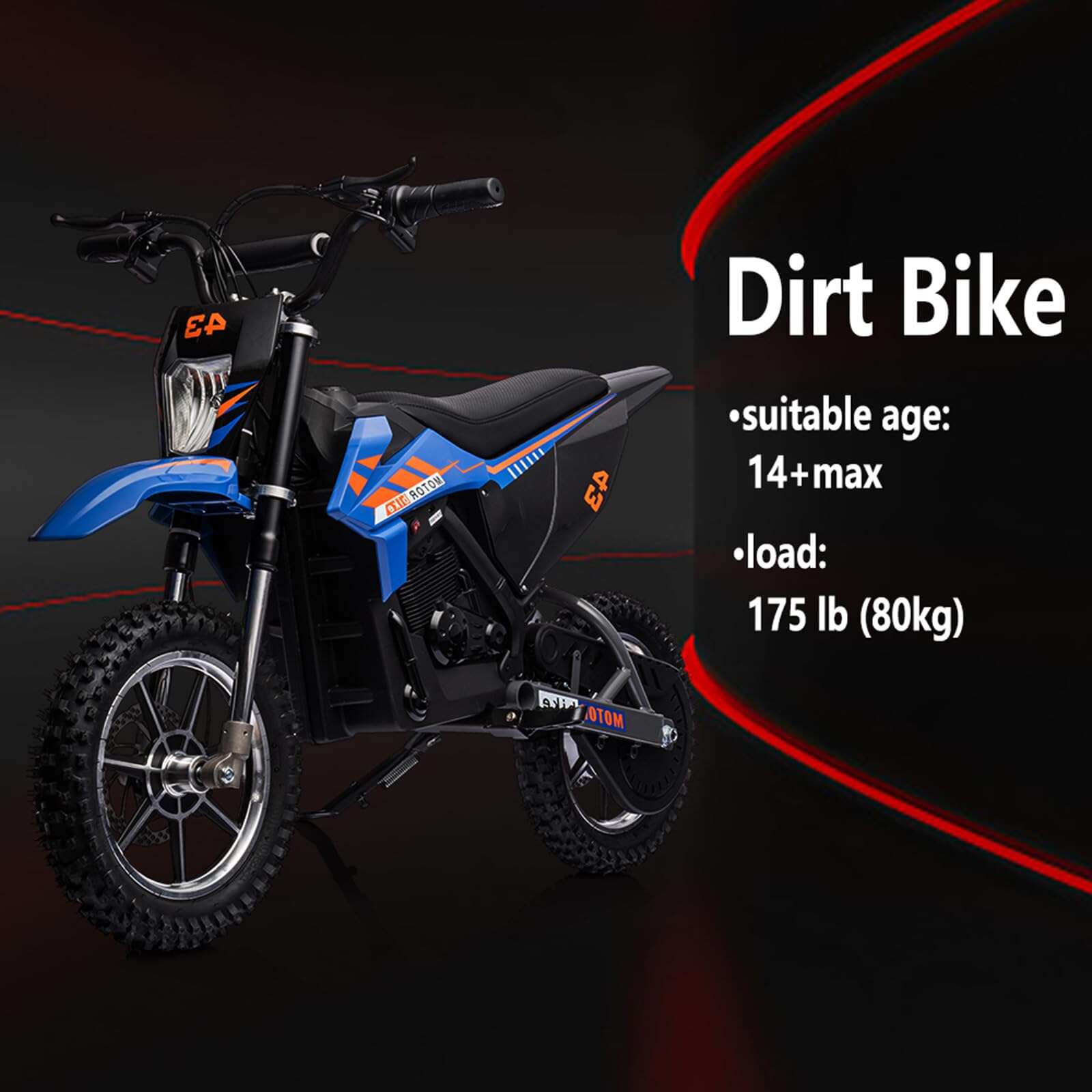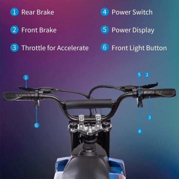 36V Kids Electric Dirt Bike, 36V, 350W, 15.5MPH, LED, 175lbs Max – Blue