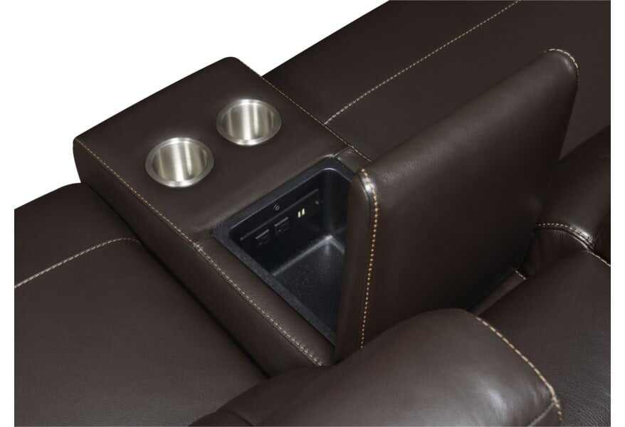 Featuring three power reclining seats, a storage console with cup holders and USB charging, this sectional blends function, convenience,