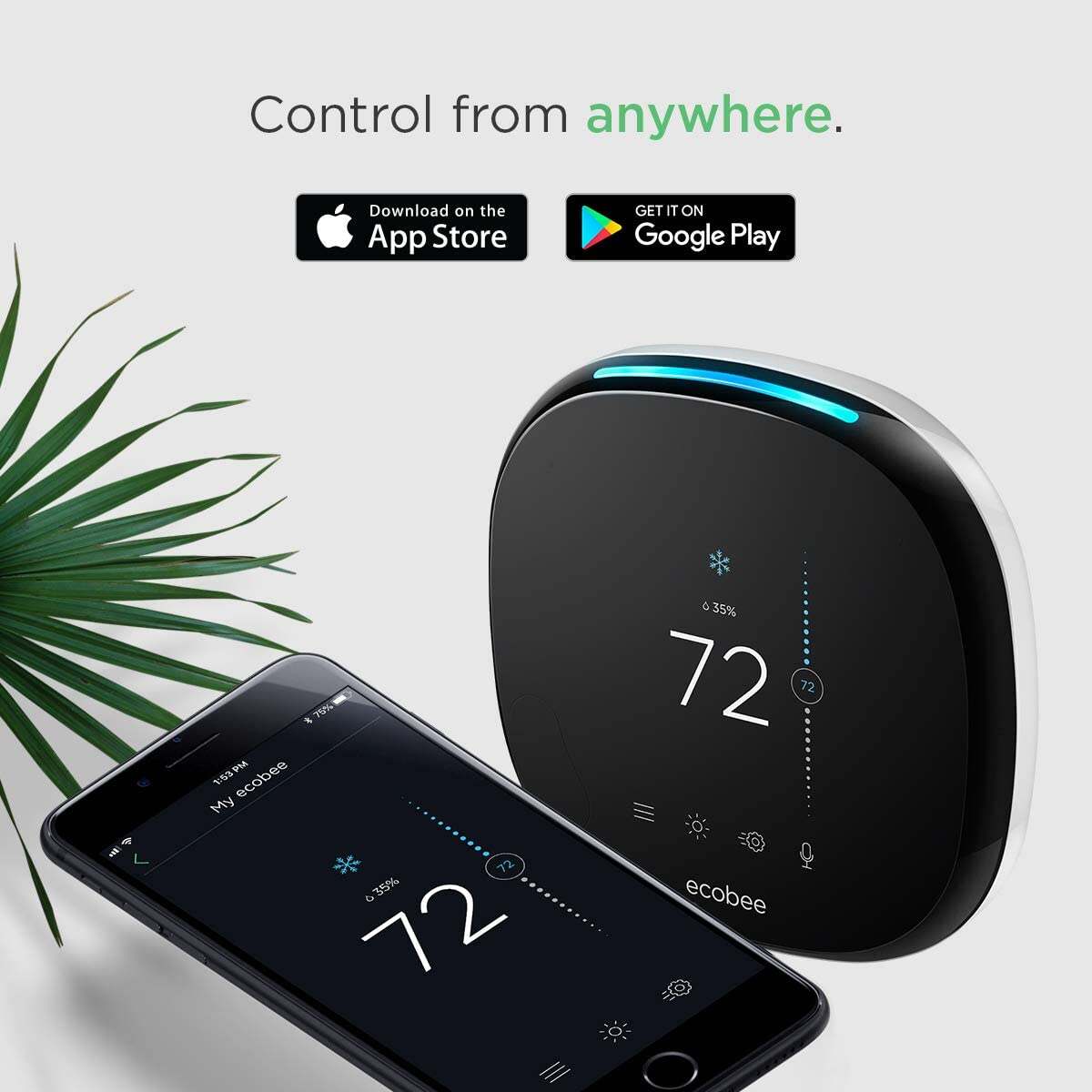 - CONTROL FROM ANYWHERE: Easily adjust your thermostat from wherever you are using your iOS (iPhone, iPad, Apple Watch) or Android device. The ecobee mobile app is available in the App Store or on Google Play. Works with: Apple Homekit, Amazon Alexa, Samsung SmartThings, IFTTT and more.