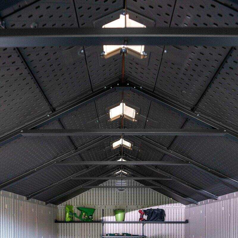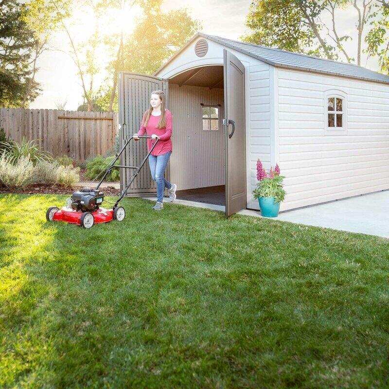 Lifetime's outdoor sheds combine quality materials with innovative design, offering a convenient storage solution that maximizes storage potential. Combined with superior value and the ability to withstand nature's day-to-day abuse. Double-wall, steel-reinforced construction and steel roof trusses make the sheds structurally sound, so they won't buckle during storms or dent during everyday use.
