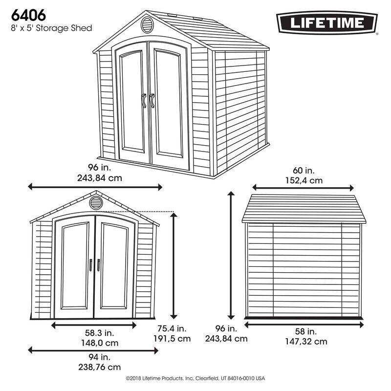 When you buy a Lifetime 8 ft. W x 5 ft. D Plastic Storage Shed online from Our Store, we make it as easy as possible for you to find out when your product will be delivered. Read customer reviews and common Questions and Answers for Lifetime Part #: 6406 on this page. If you have any questions about your purchase or any other product for sale, our customer service representatives are available to help.Whether you just want to buy a Lifetime 8 ft. W x 5 ft. D Plastic Storage Shed or shop for your entire home, Our Store has a zillion things home.