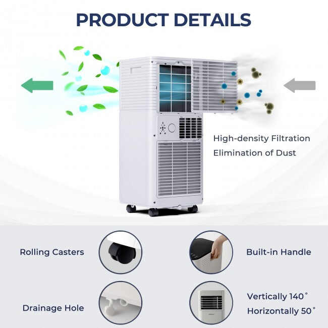 ● Powerful Cooling Capacity: Equipped with 8000 BTU cooling power and a washable dust filter screen, this portable air conditioner can cool down an area of 230 square feet while purifying the air at the same time. And the airflow is rated at 290 m³/h, which can provide steady, fast, and effective cooling for any room in your home.