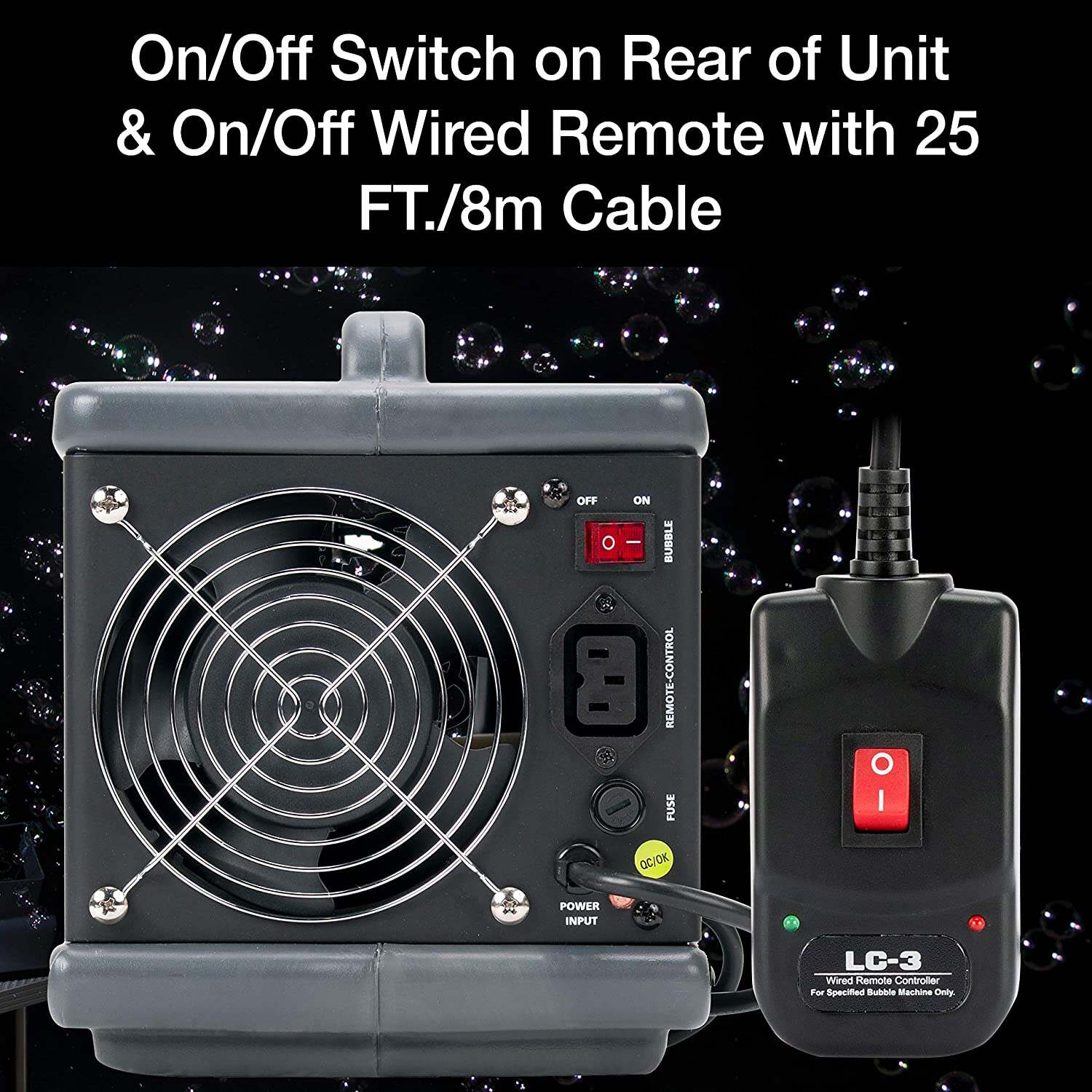 Create atmospheric effects with the BubbleTron from ADJ Products. This professional, lightweight bubble machine produces hundreds of high flying bubbles in a matter of minutes. Consuming only 20 ml/minute, the 2 liter capacity tank will last the whole night so there is no need to constantly worry about filling. Create an exciting addition to any light show or use as a stand alone solution, the BubbleTron is the professional bubble machine you can count on for lasting effects.