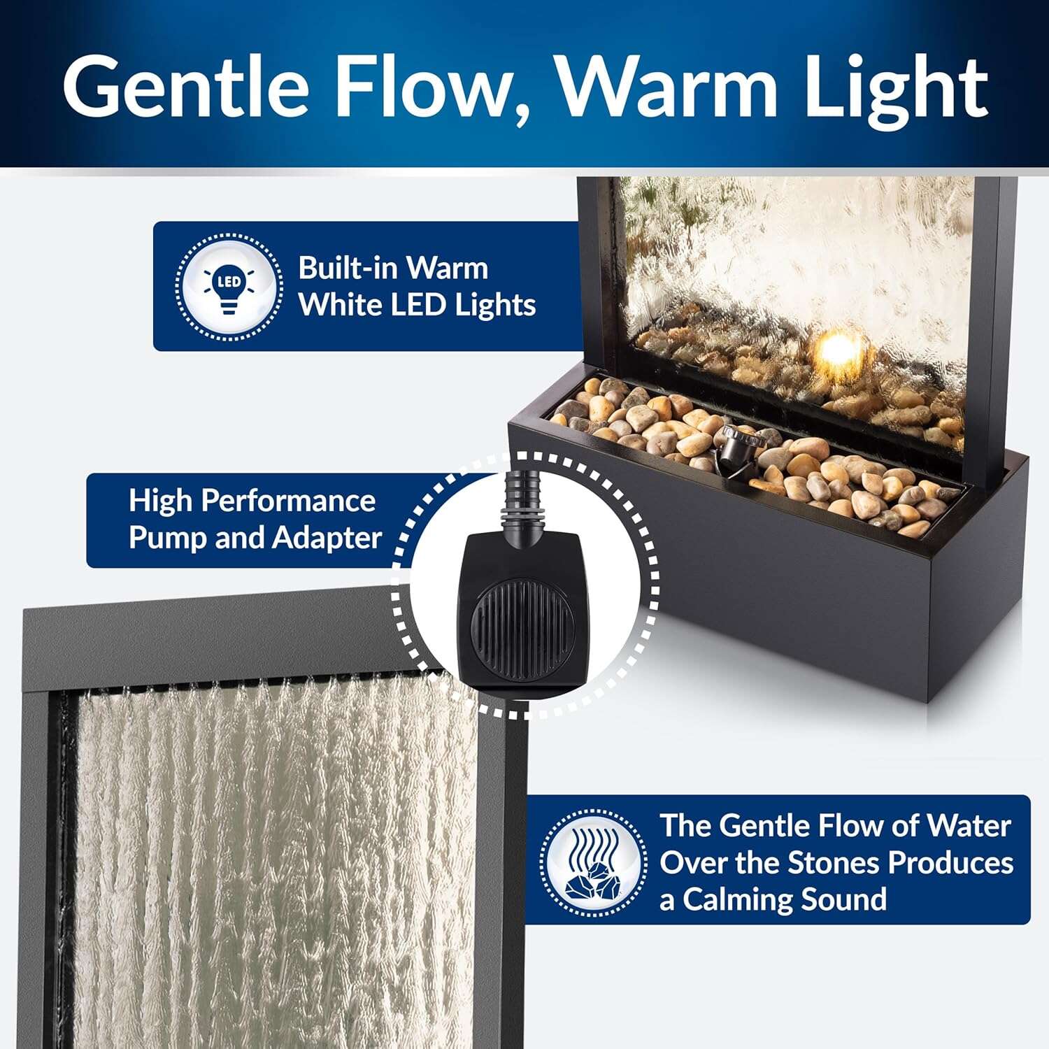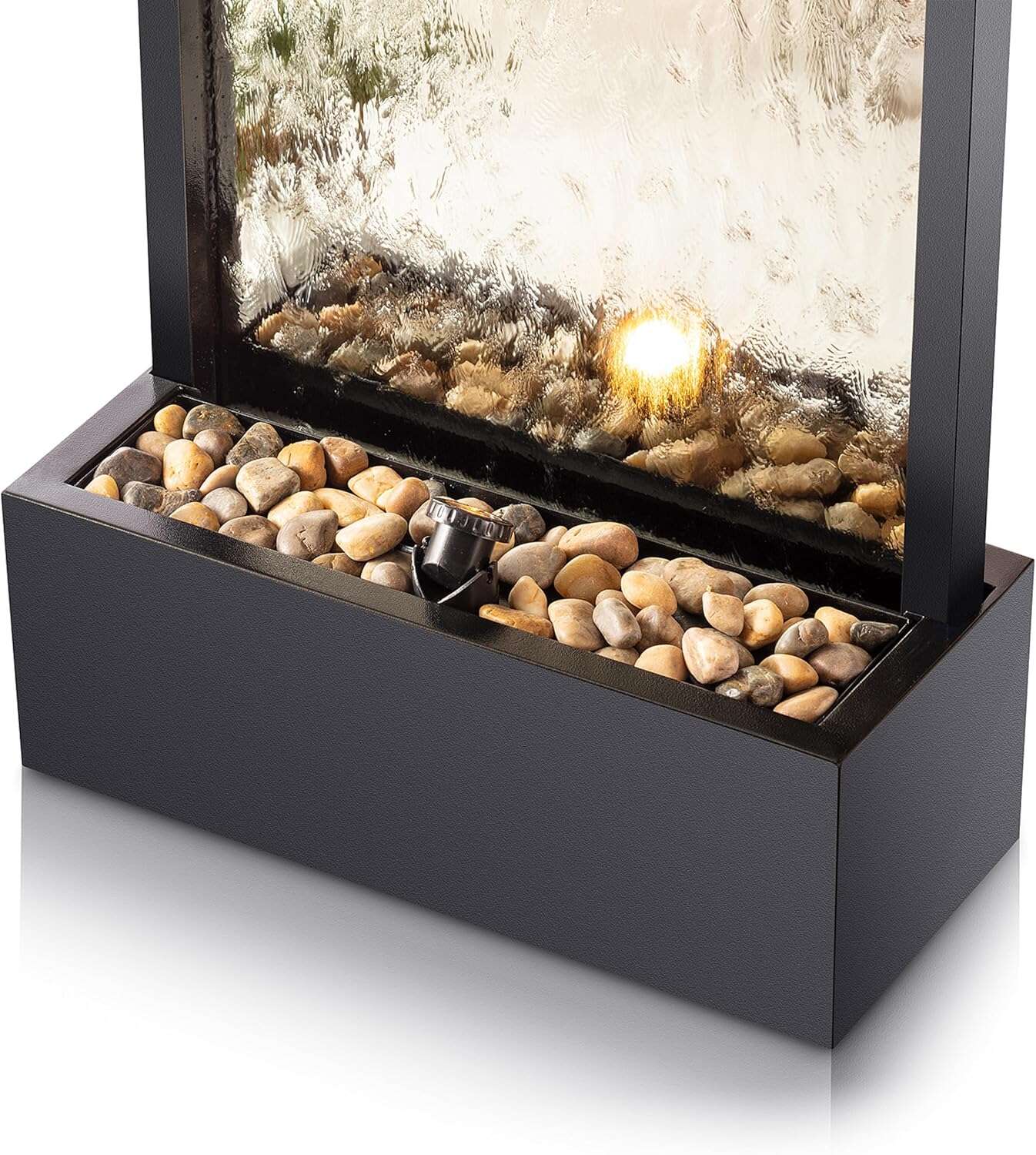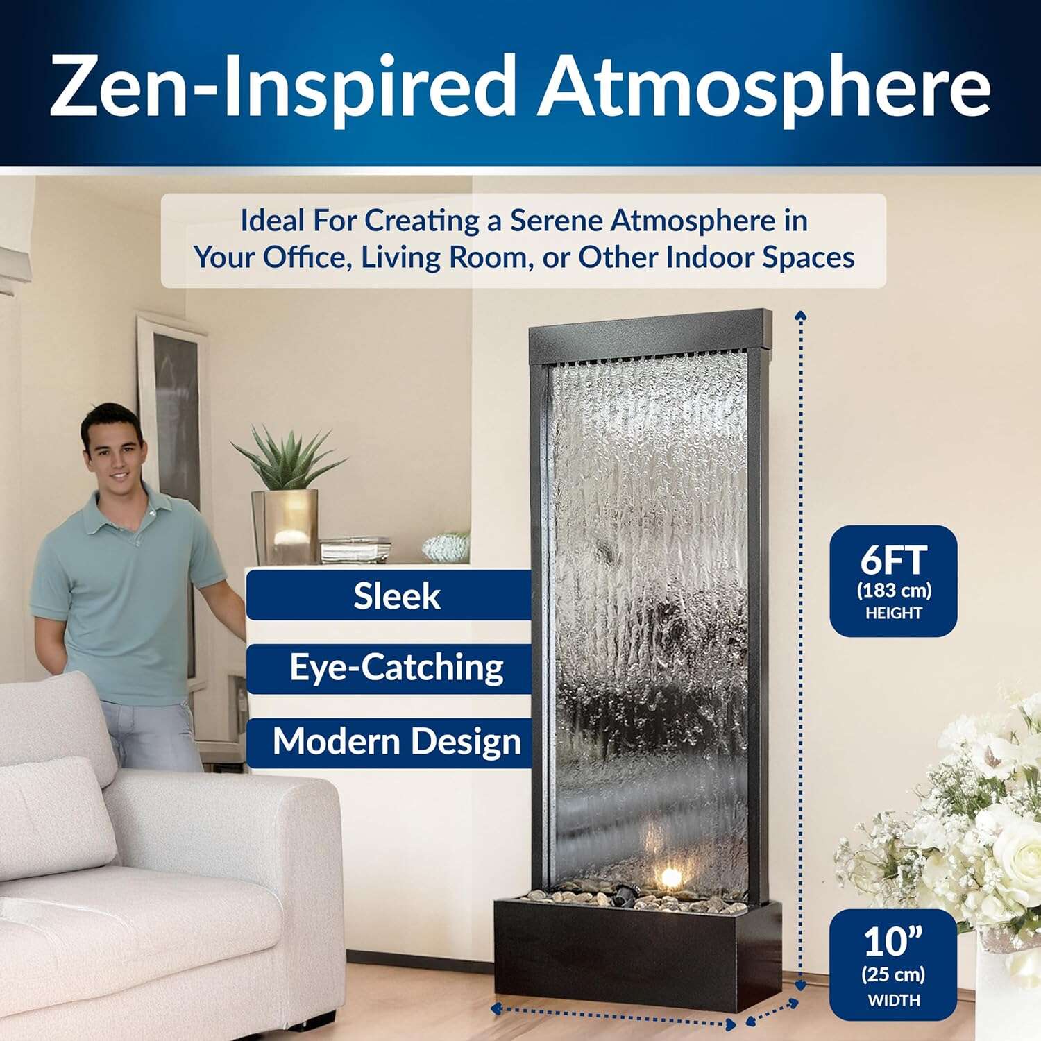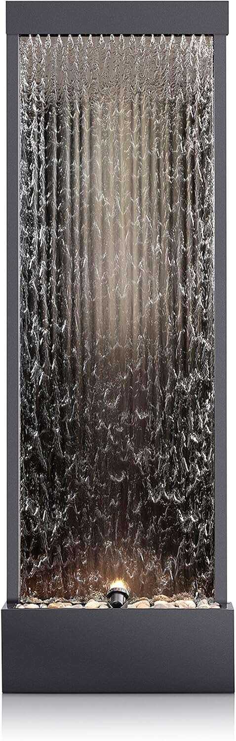 Alpine Mirror Waterfall Fountain with Stones & Lights, 72", Indoor/Outdoor Zen Decor