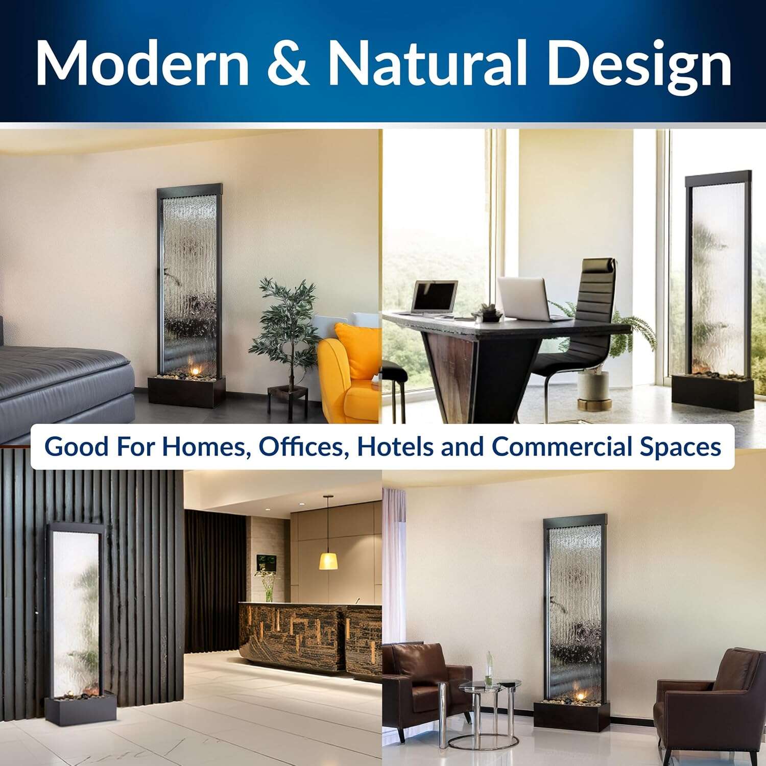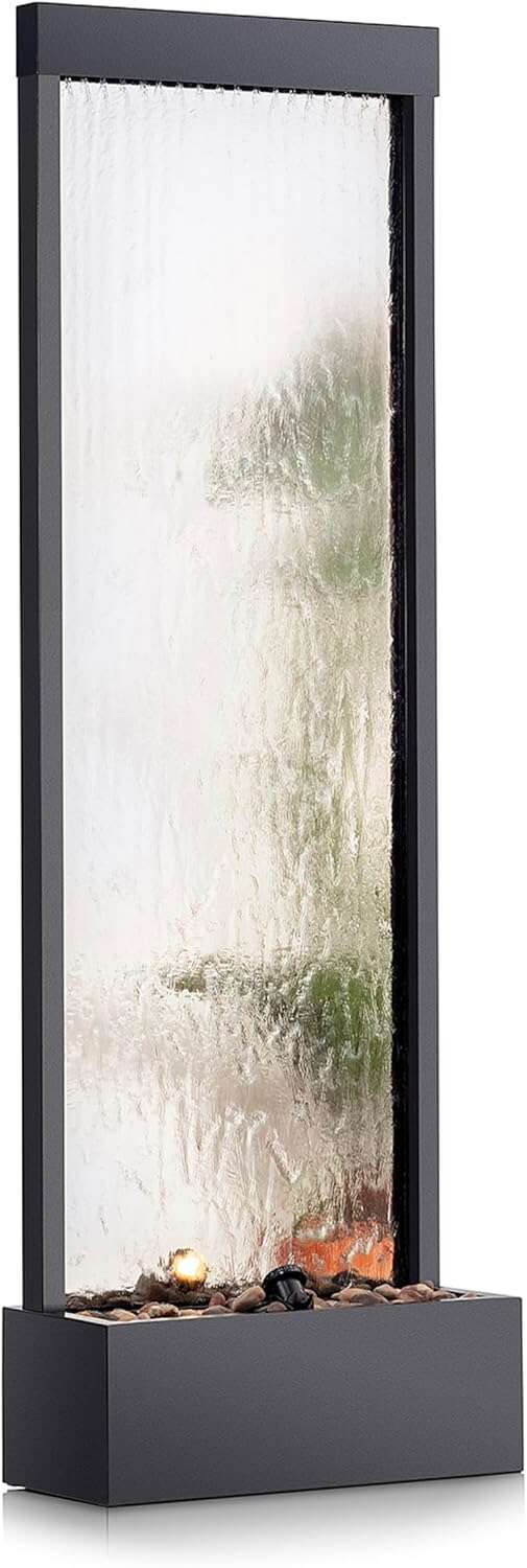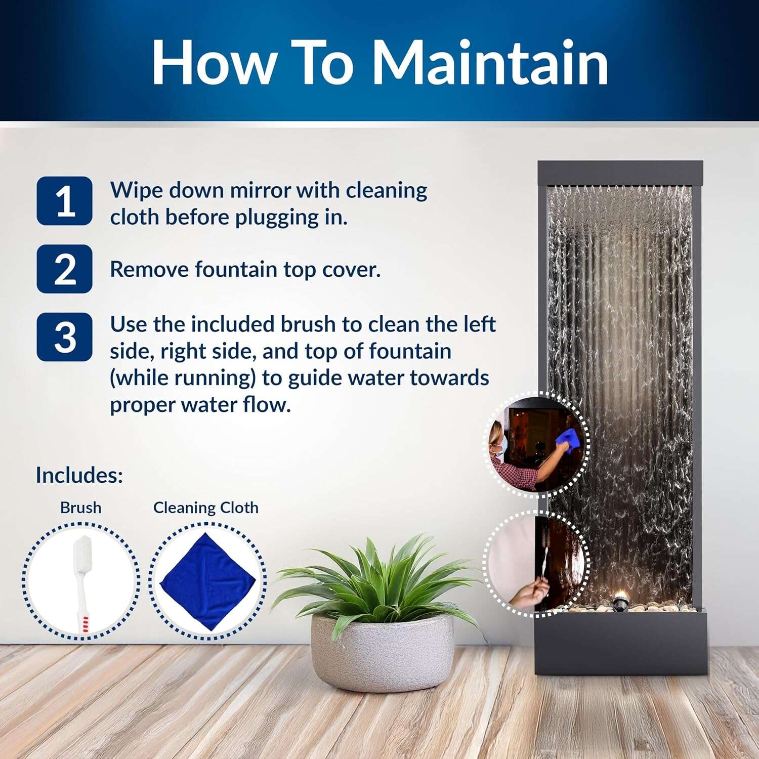 Alpine Mirror Waterfall Fountain with Stones & Lights, 72", Indoor/Outdoor Zen Decor
