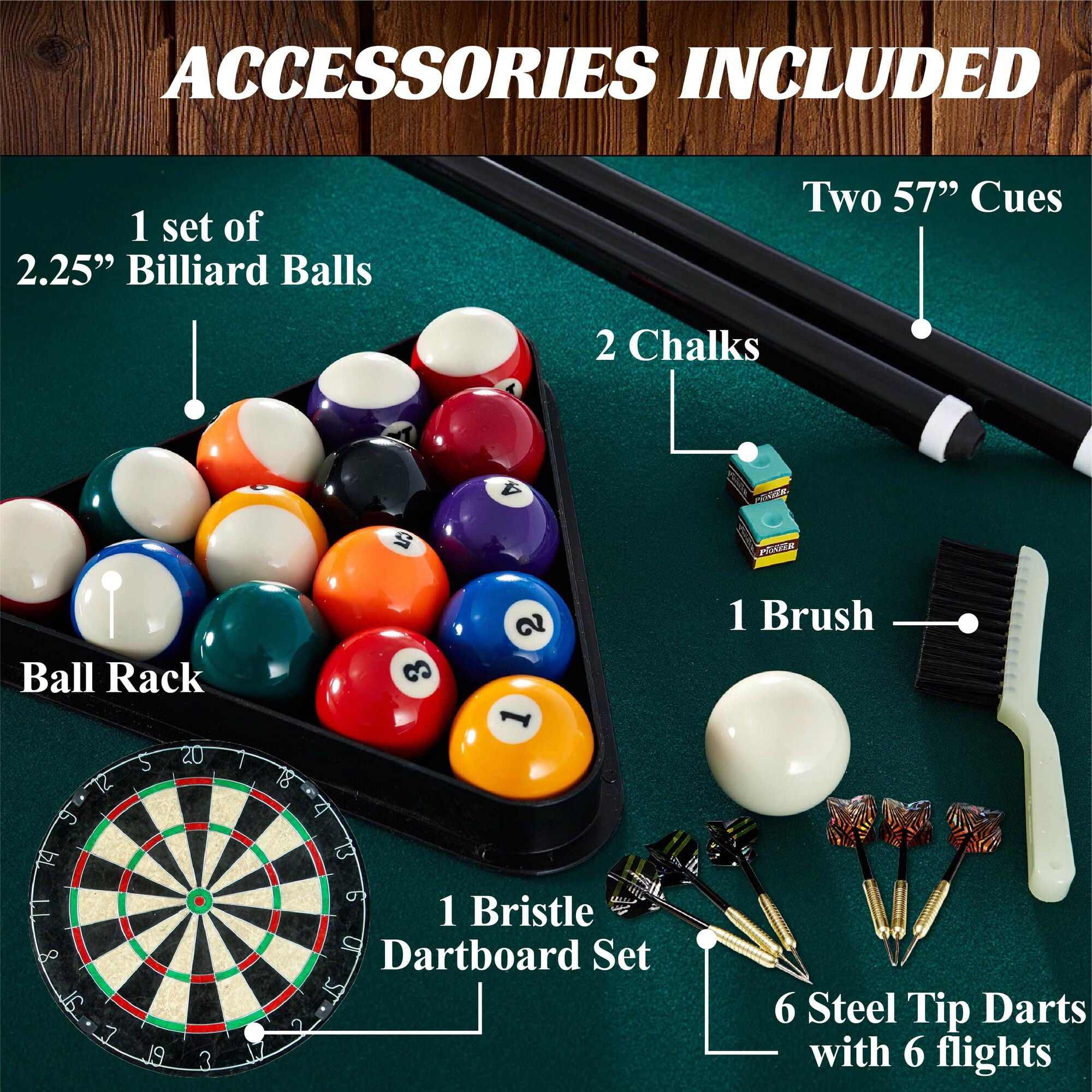 Barrington Billiard 84" Arcade Pool Table with Bonus Dartboard Set, Green
