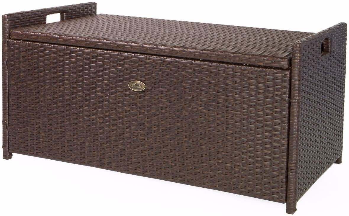Barton Outdoor Storage Bench Rattan Style Deck Box Wicker Patio Furniture Water Resistance w/Seat Cushion, 60-Gallon, Brown