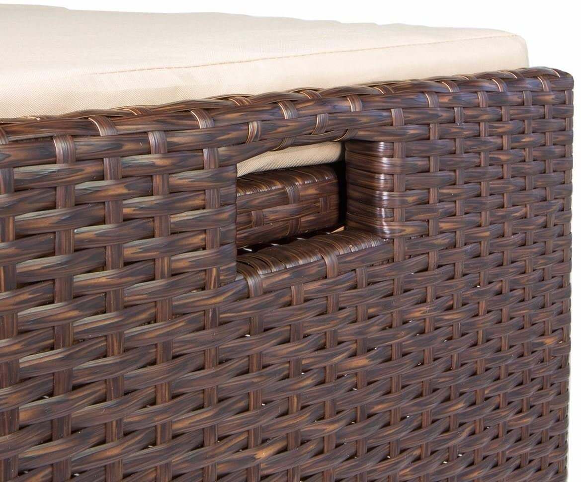 Keep outdoor cushions dry and away from the sun��s rays when not in use by tucking them safely into this Barton wicker storage box. This durable outdoor storage bench also provides extra seating, and its brown handwoven wicker finish lets it blend in with most patio and backyard decor themes.