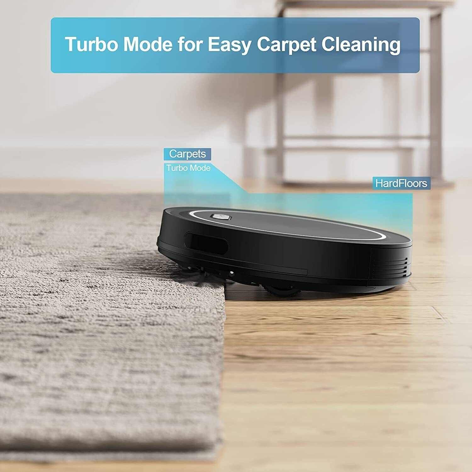 Best part of all, you can easily choose between 4 cleaning modes and get up to a maximum suction power of 2500 Pa, our smart robot vacuum cleans everything from hard floors to carpets. Ideal for daily messes, pet hair, and more. Plus, it is powerful yet quiet, making only 55 db of noise and being no louder than the hum of a microwave. It quietly cleans while you go about your day!