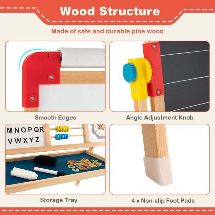 Our art easel stand is made from high-quality, durable natural pine wood that will withstand even the most energetic art sessions. Its sturdy design means your child can create freely without fear of the easel tipping over or falling apart.