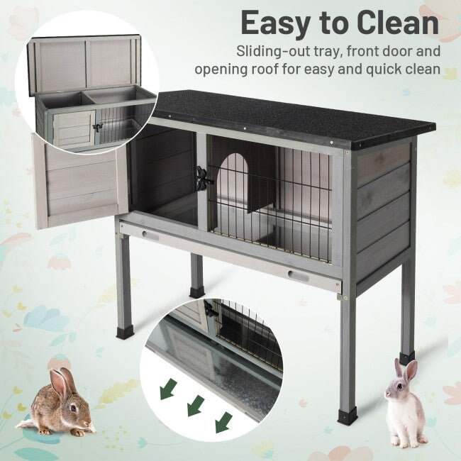 - EFFORTLESS CLEANING�- The bottom tray under the rabbit house can be totally pulled out for you to clean effortlessly. Also, the detachable design allows you to decorate the living space for the pets in an easy way.�Simply place dry haulm�on the tray to provide pets with a great living condition.