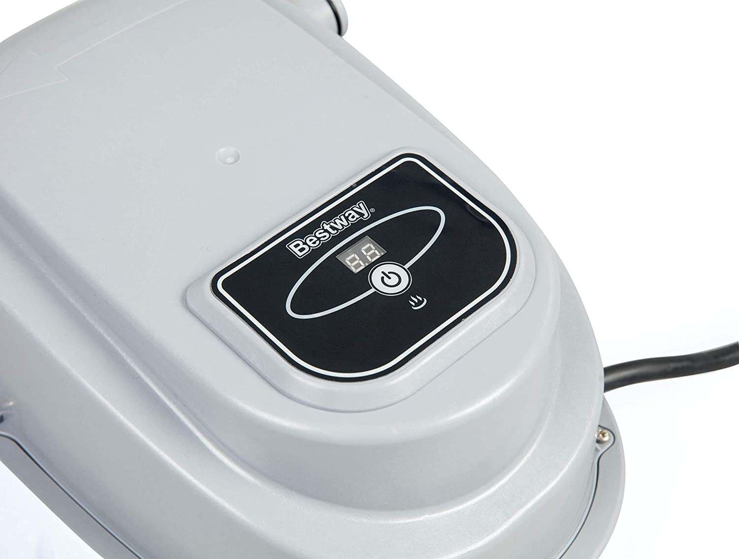 Bestway Pool Heater is a simple and effective to warm up water in your above ground swimming pool, transforming it into a comfortable and relaxing space to swim, paddle and play in. The pool heater is powered through an electrical outlet. It comes with two hoses and attachments, one of which connects the heater to a filter pump and the other to a pool. Water is pumped into the heater via the filter pump, warmed up as it passes through and then pumped back into the pool. The heater is compatible with pools measuring 15ft or smaller (water volume of 400-500gal) and filter pumps or sand filters with a flow rate of 1,000 gal/hr. (3,785L). Depending on pool size and water temperature the heater can take anywhere from 12 hours to 3 days to reach your desired temperature. If clambering into a freezing pool is making you look and feel blue then the Bestway Pool Heater is the accessory for you!