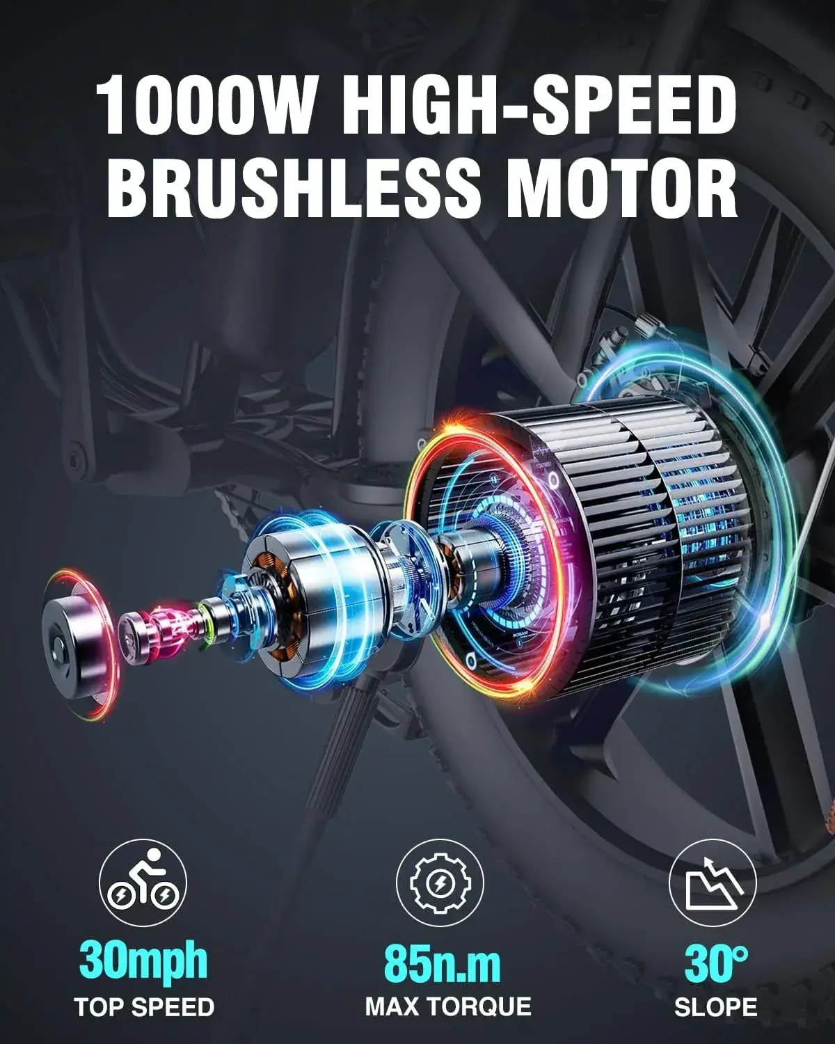 • Bopzin 1000W Electric Bike for Adults 48V 15Ah Removable Battery Ebike 20" x 4.0 - 1000W