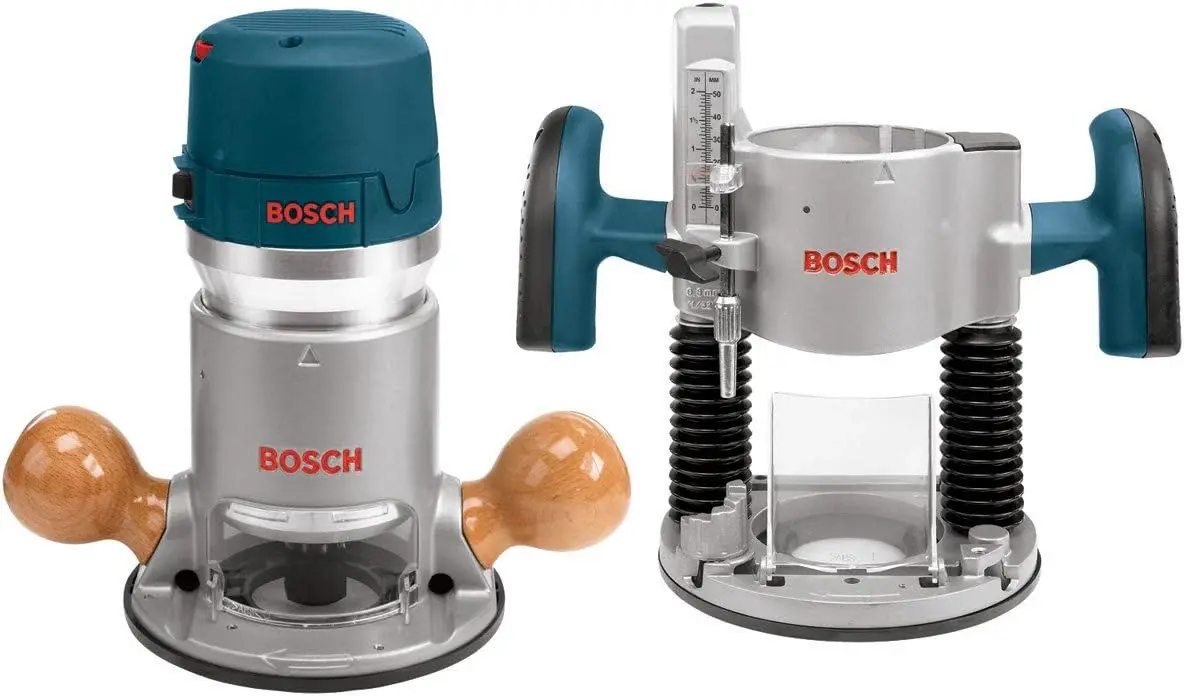 • BOSCH 1617EVSPK Wood 12 Amp Router Tool Combo Kit - 2.25 Horsepower Plunge Router & Fixed Base with a Variable Speed