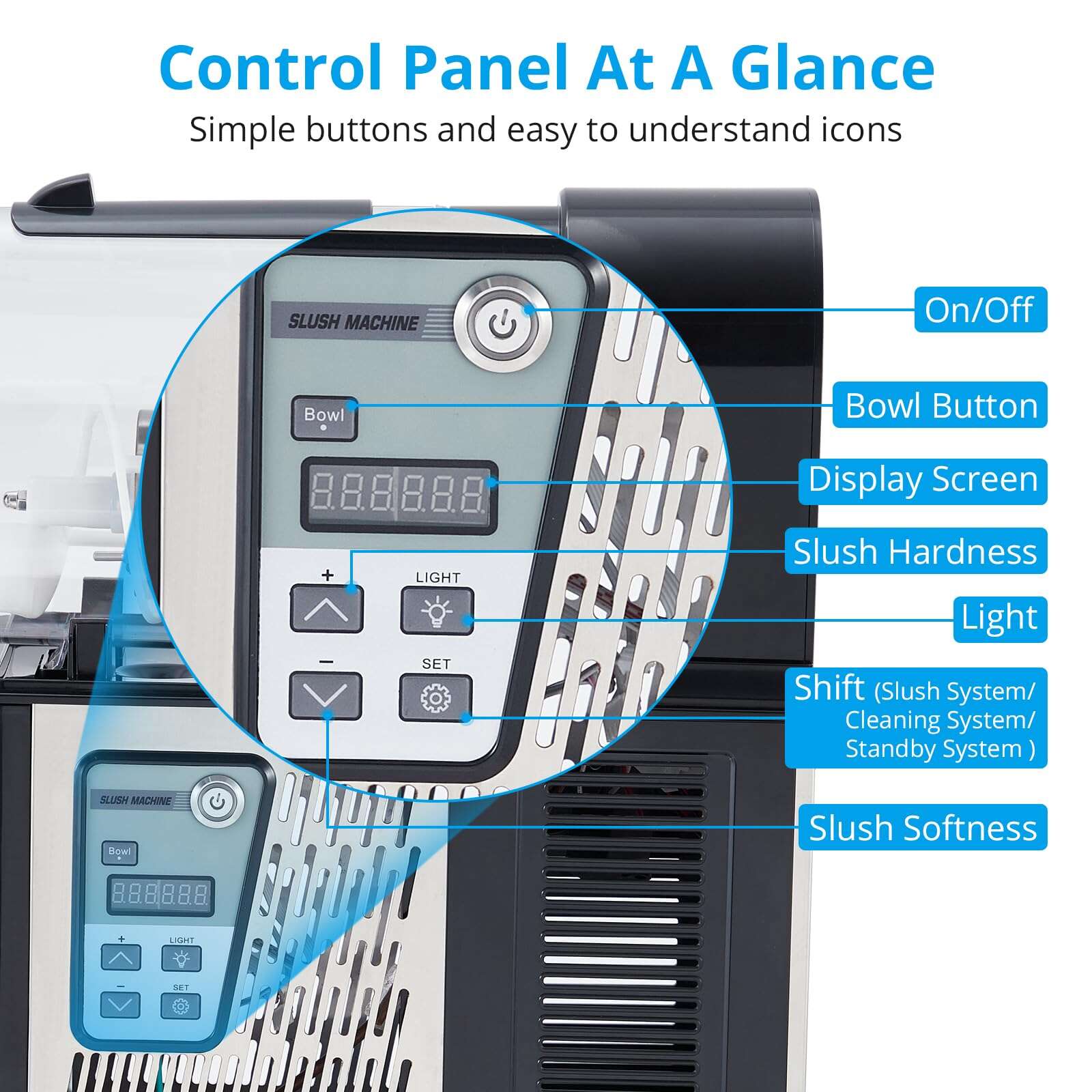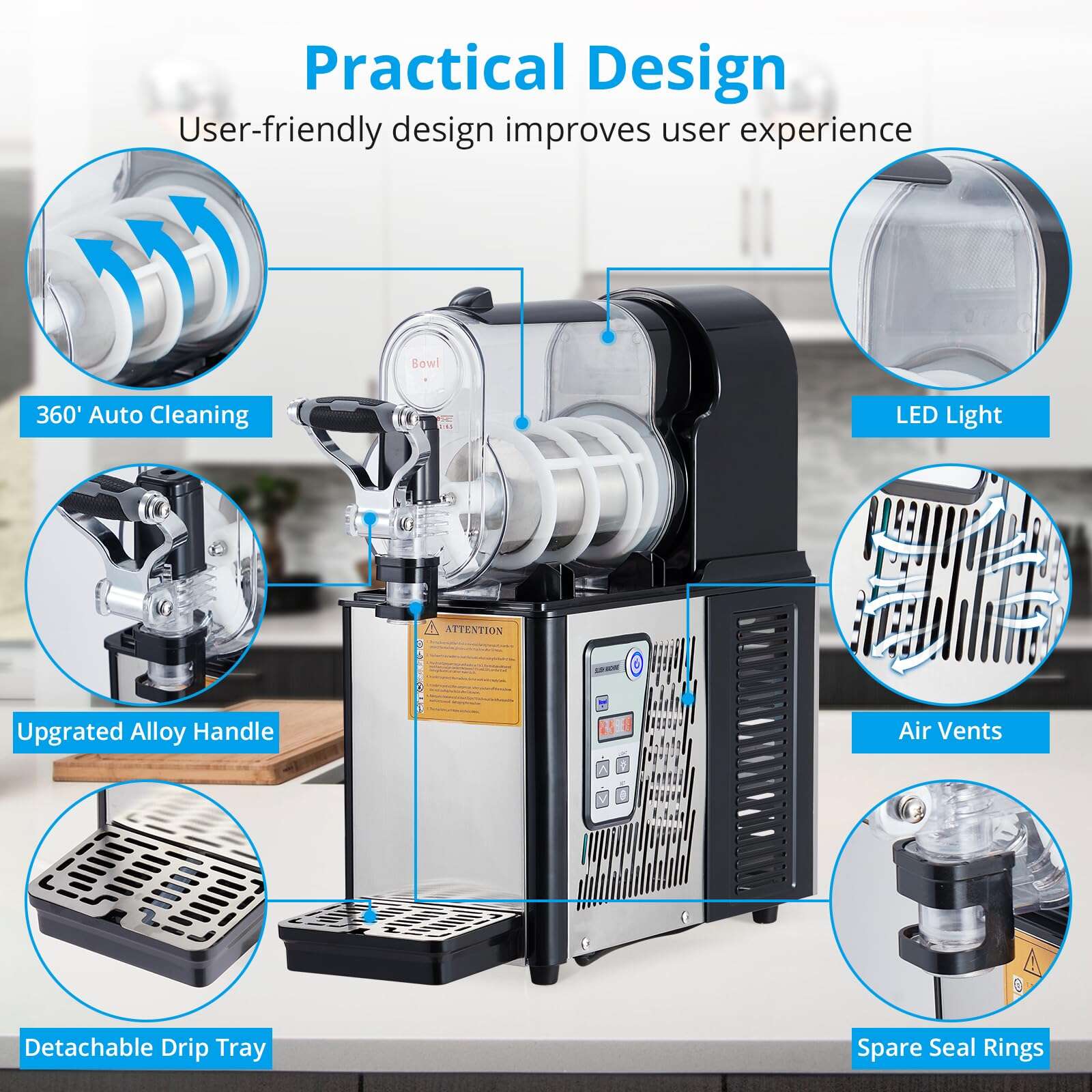 • Commercial Slushie Machine 3L Stainless Steel Self-Cleaning Slushy Maker for Frozen Drinks,Snow Melting Ideal for Home,Coffee Shop,Restaurant