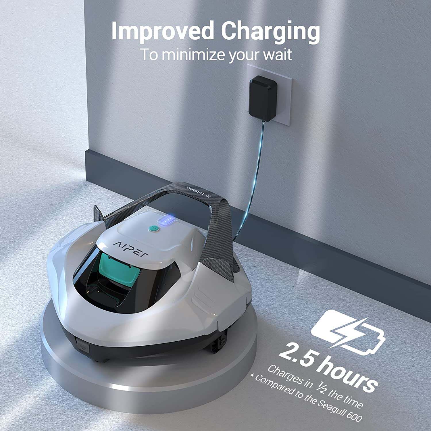 - EASY TO USE & CLEAN: Lightweight at just 6.6lbs, making it dead easy to use and operate. Just power the unit on, drop it in and walk away. Aiper will perform its duties automatically and without supervision.When its work finished, simply remove the cover, and rinse the filter with a hose to clean it.