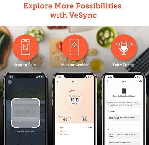 • SCAN-TO-COOK: Use the free VeSync app to scan multiple types of frozen foods for easy-to-follow cooking instructions and to view your food��s nutrition facts