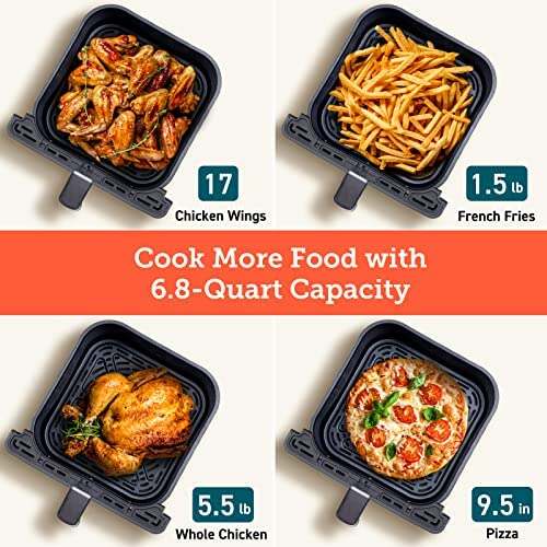 • PLENTY OF SPACE: Fit more than 17 chicken wings in the large 6.8-quart basket��our most spacious basket to date