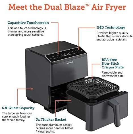 COSORI Air Fryer 6.8Qt, Dual Blaze with 360 ThermoIQ Tech