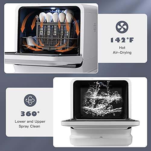 COSTWAY Portable Countertop Dishwasher, with 7.5L Openable Water Tank, Inlet Hose, 360掳Dual Spray Arms, 5 Washing Programs, 24H Air-Dry Function, Child Lock, Dishwasher Machine for Small Apartment, RV
