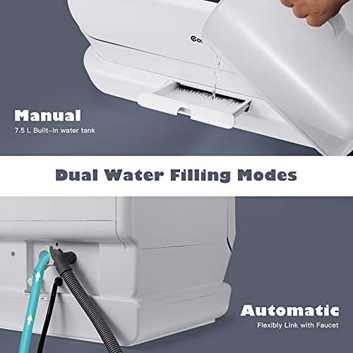 - ?7.5 L OPENABLE BUILT-IN WATER TANK����There are 2 water supply options for the dishwasher. It can link directly with the faucet through inject hose, or pump the water from the 7.2L built-in water tank. In that case, you don��t need a spare sink or extra countertop area. More conveniently, the water tank and the 3-layer filter are detachable and open for daily cleaning and maintenance.