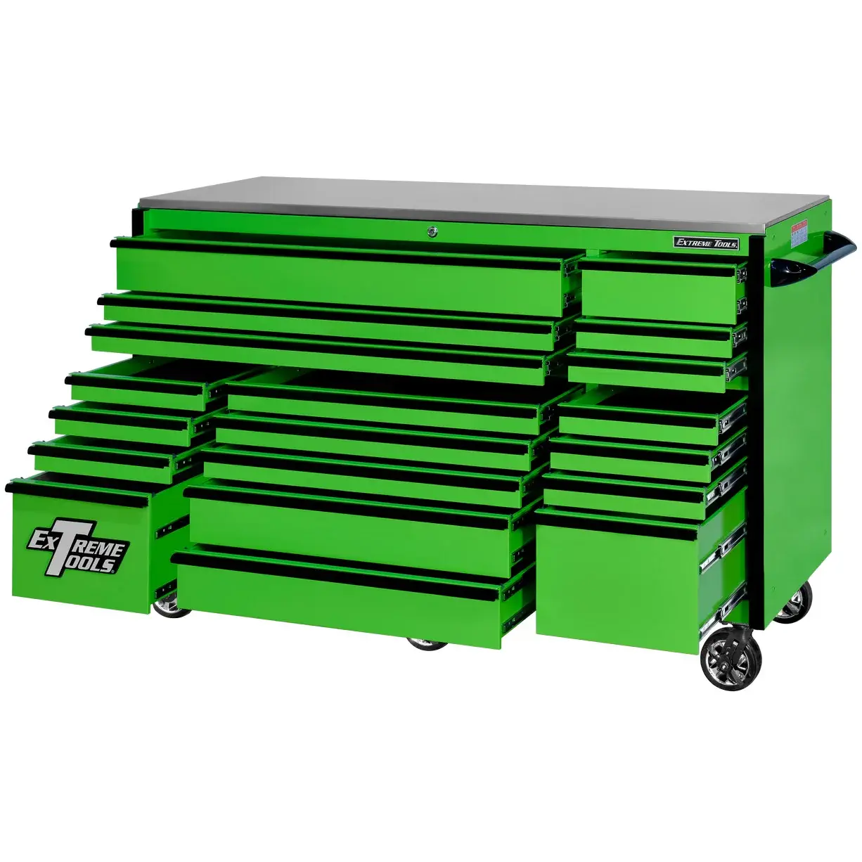 • Extreme Tools RX250 Series 72-in x 30-in Roller Cabinet 19-Drawer 250 lb Drawer Slides