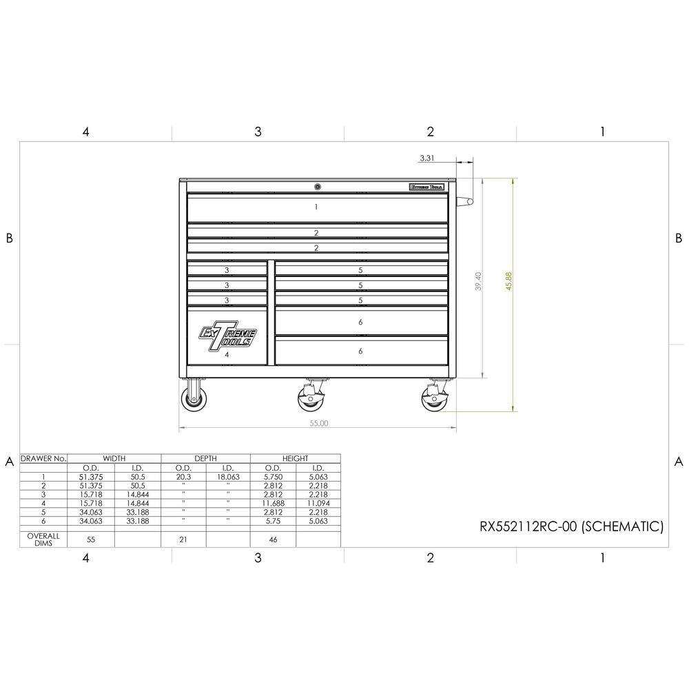 • Extreme Tools THD Series 55 in. 12-Drawer Roller Cabinet Tool Chest in Blue THD552112RCBL