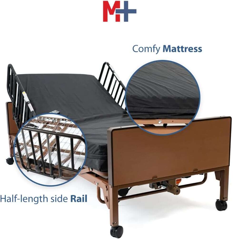 Fully Electric Hospital Bed Set, Foam Mattress, Half Rails