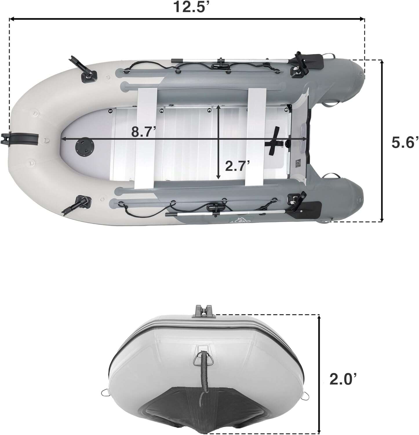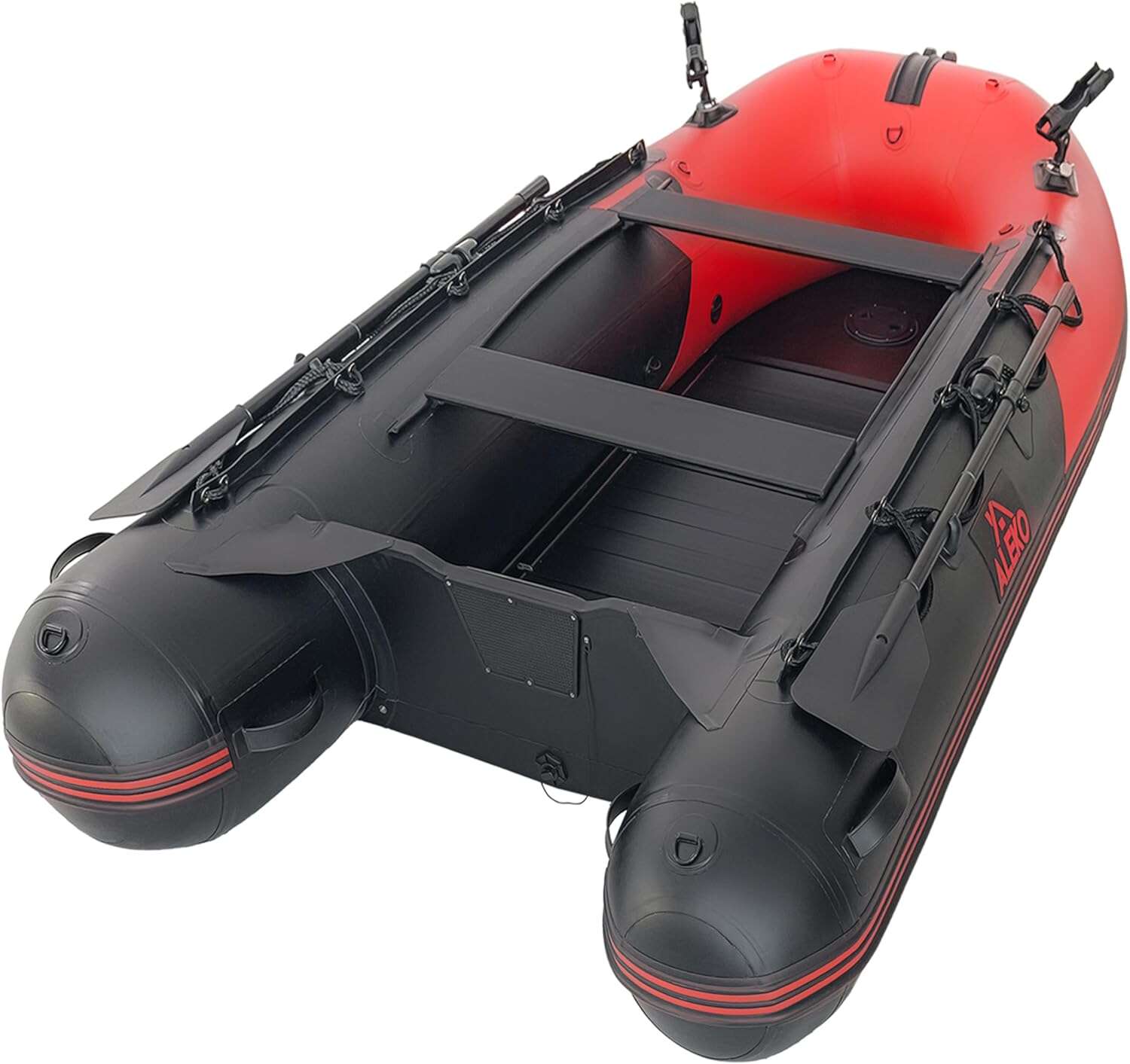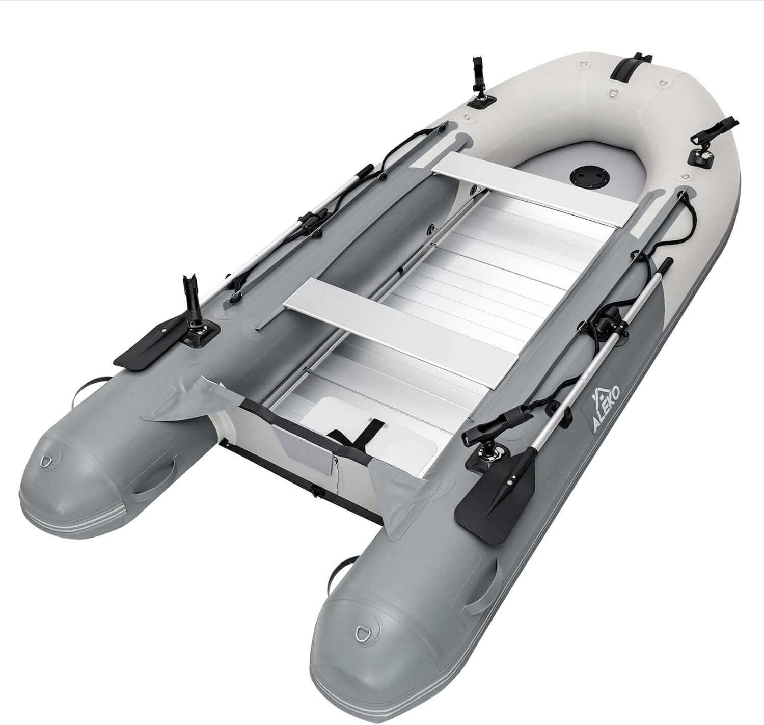 • Inflatable Boat | Yacht Dinghy Tender Raft | Multi Person Fishing Boat | Aluminum Floor Oars | Fishing Rod Holders | Heavy-Duty PVC | 2024 Model |