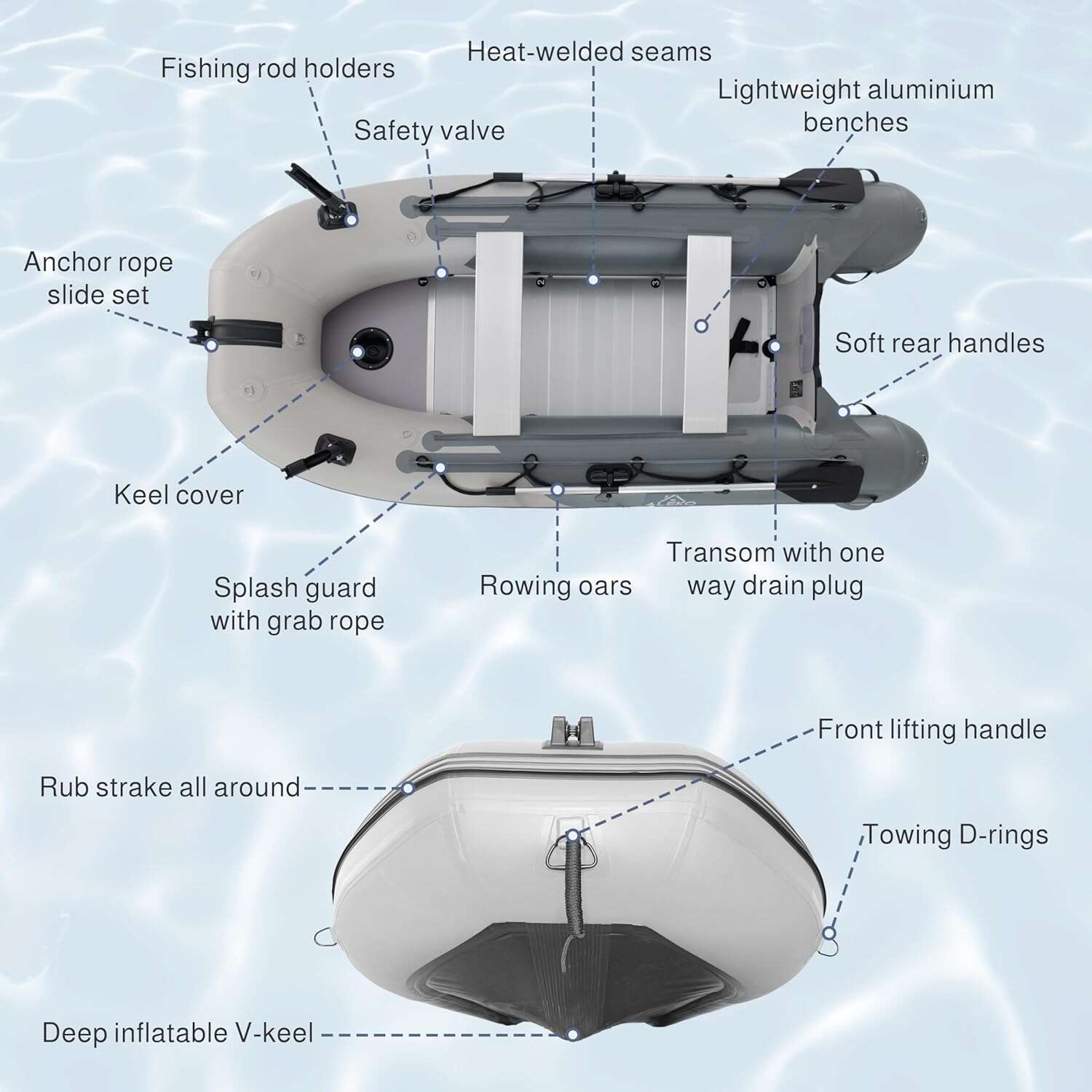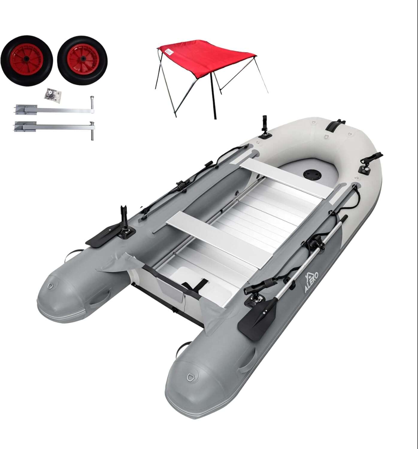 Inflatable Boat | Yacht Dinghy Tender Raft | Multi Person Fishing Boat | Aluminum Floor Oars | Fishing Rod Holders | Heavy-Duty PVC | 2024 Model |