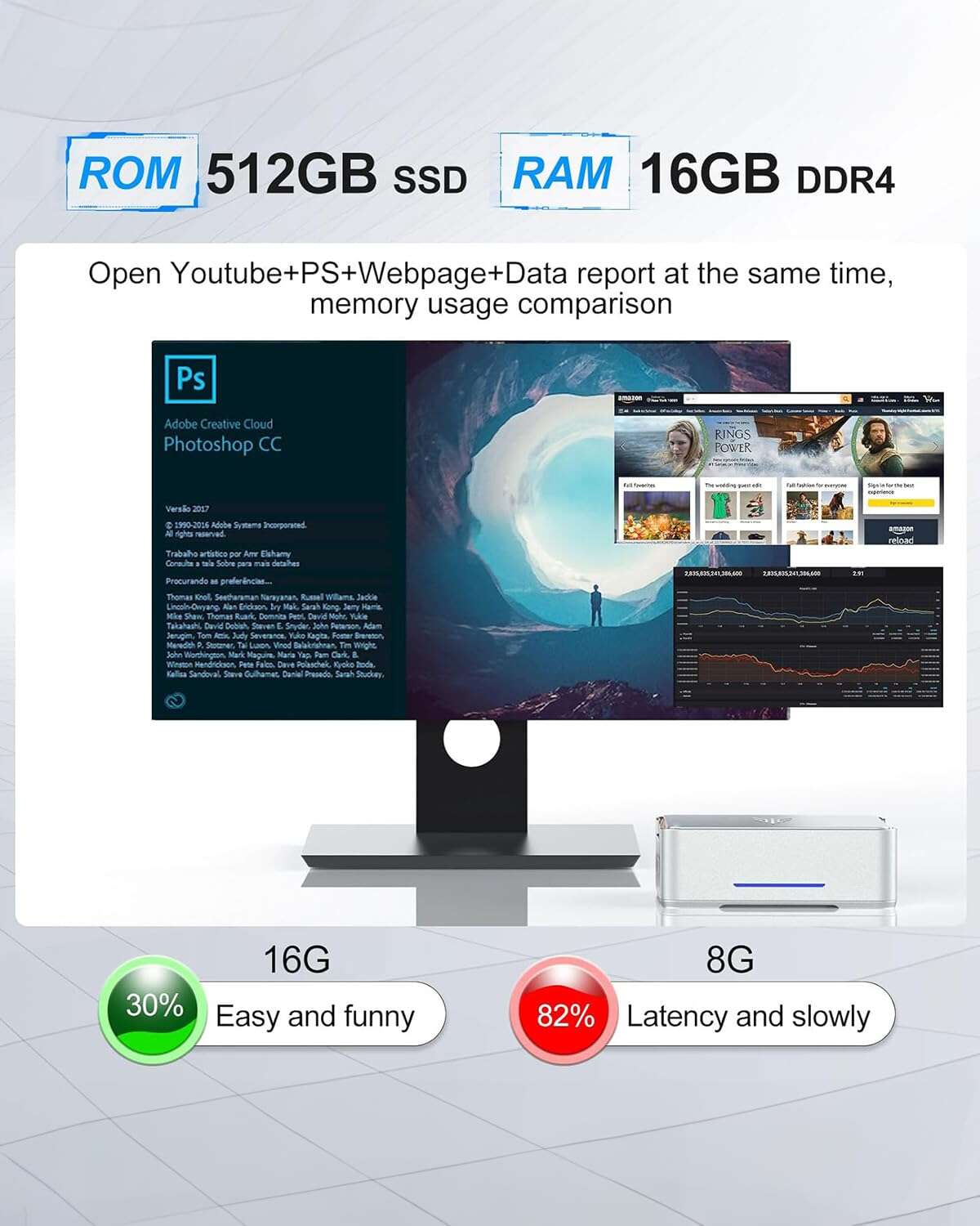 The KAMRUI GK3Plus is a compact, high-performance mini PC that packs impressive power into a tiny footprint. Equipped with 16GB RAM and a fast 512GB M.2 SSD, it delivers smooth multitasking, quick boot times, and responsive performance for daily computing tasks, office work, media streaming, and light creative projects.