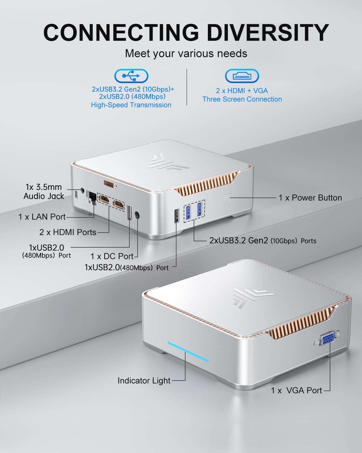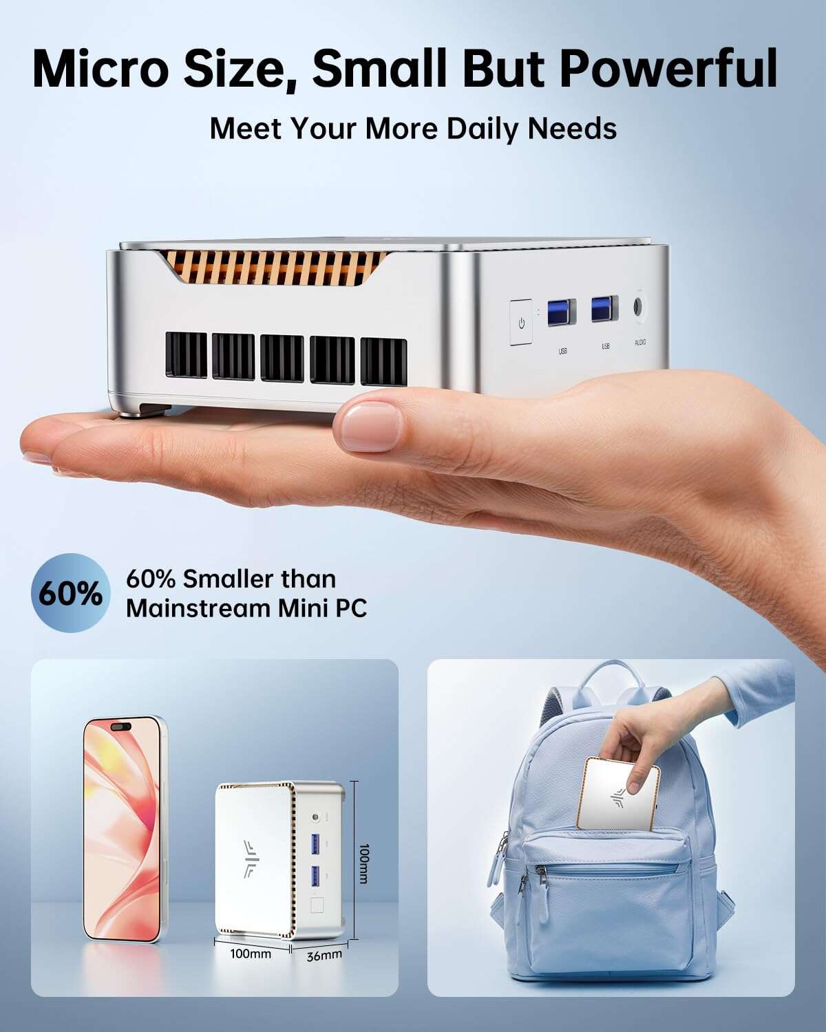 - Size: Ultra-compact mini PC