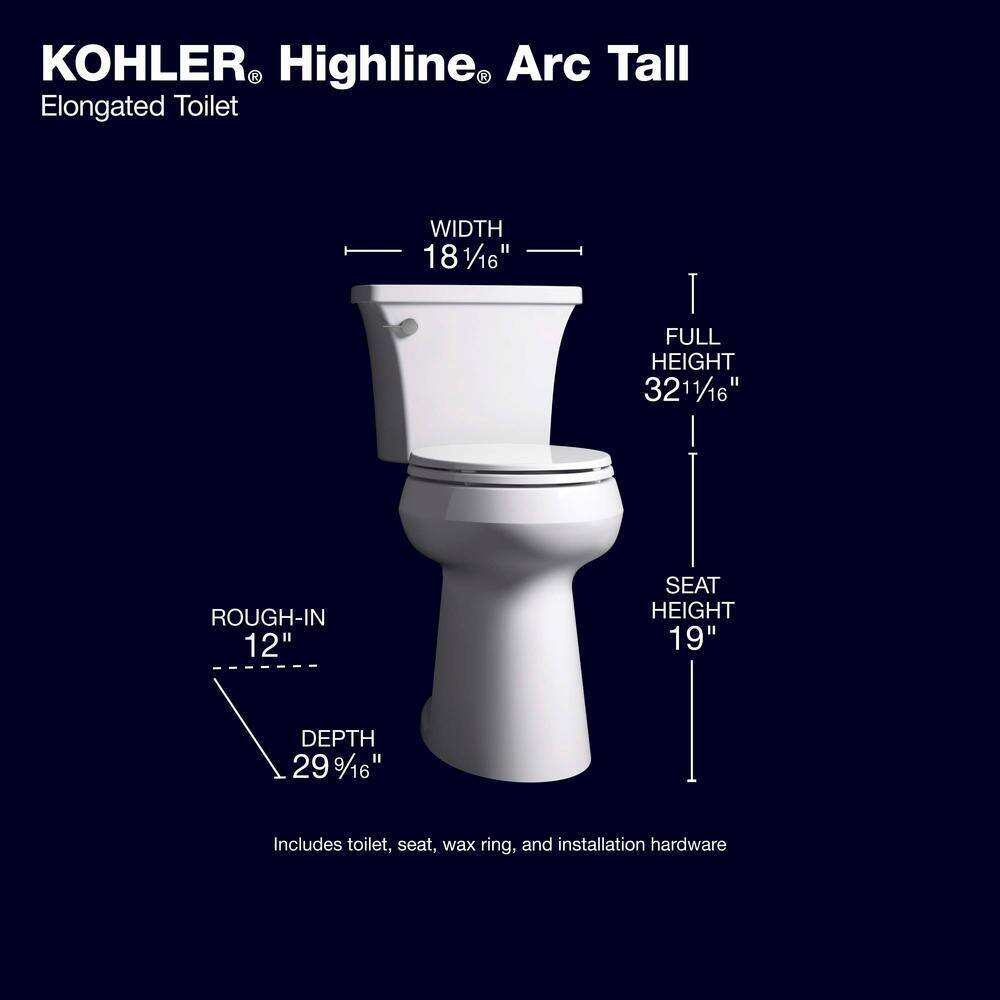 KOHLER Highline Arc Extra Tall Elongated Toilet 1.28 GPF – White with Seat