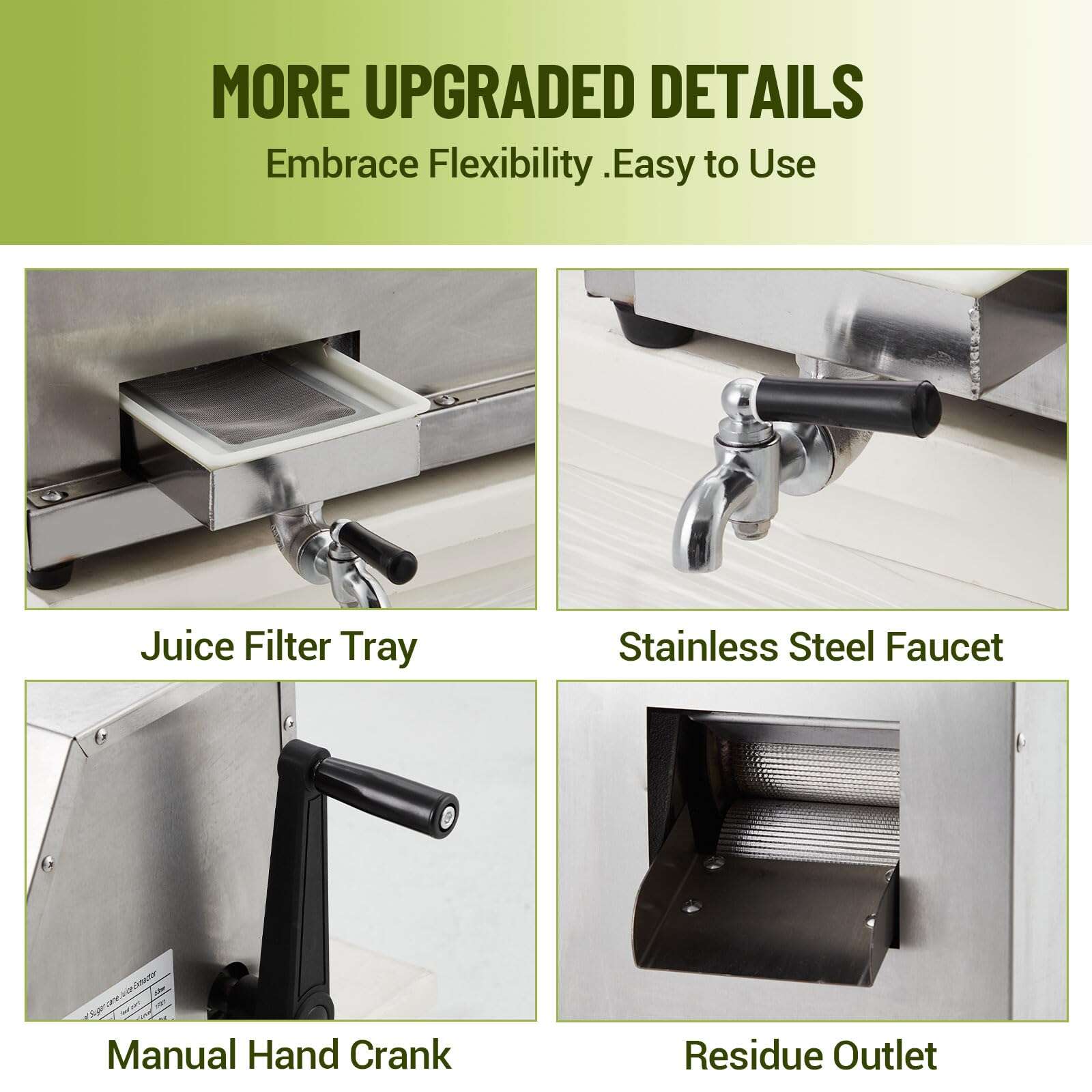 • Manual Sugar Cane Juicer Machine, Sugar Cane Press with 3 Stainless Steel Drums and 2.4-inch Large Inlet, Sugarcane Juice Machine with 110LBS/H, Suitable for Home/Commercial Use