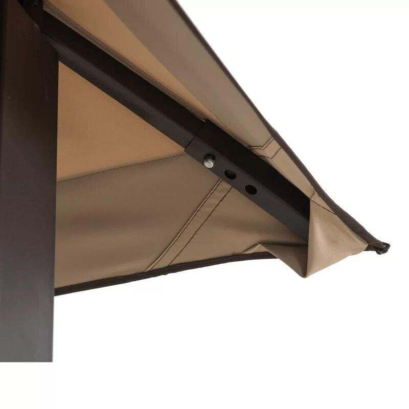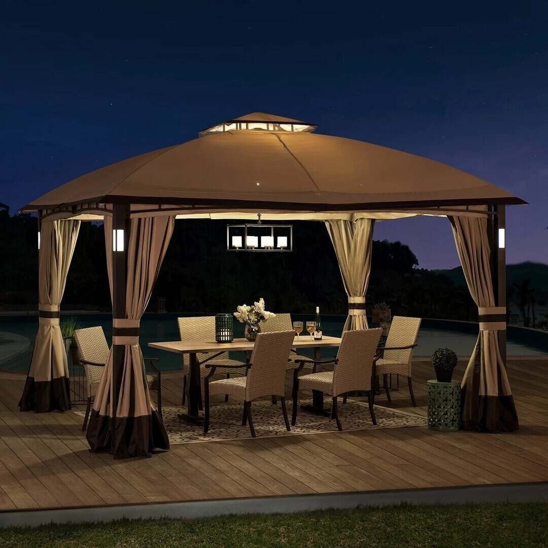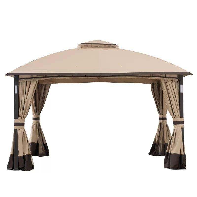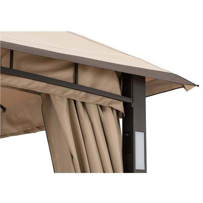 Expand your living space by moving the indoors outside to create an end-of-the-day oasis that��s the perfect spot for entertaining family and friends. This 12 ft. x 10 ft. gazebo by the world��s leading ready-to-assemble outdoor structure maker, Sunjoy, creates the perfect outdoor setting. Enjoy a covered spot outdoors under the rust-resistant powder-coated steel frame with a weather-resistant fabric canopy. Convenient battery powered LED lighting is incorporated into each frame post. In addition, enjoy your favorite music with Bluetooth enabled sound. Included privacy curtains may prevent prying eyes and the included mosquito netting will keep bugs away. Set the mood by suspending a chandelier from the incorporated ceiling hook for functional light and high design. With straight-forward,easy-to-follow assembly instructions you��ll be relaxing with your beverage of choice in your favorite new outdoor living space for years to come.