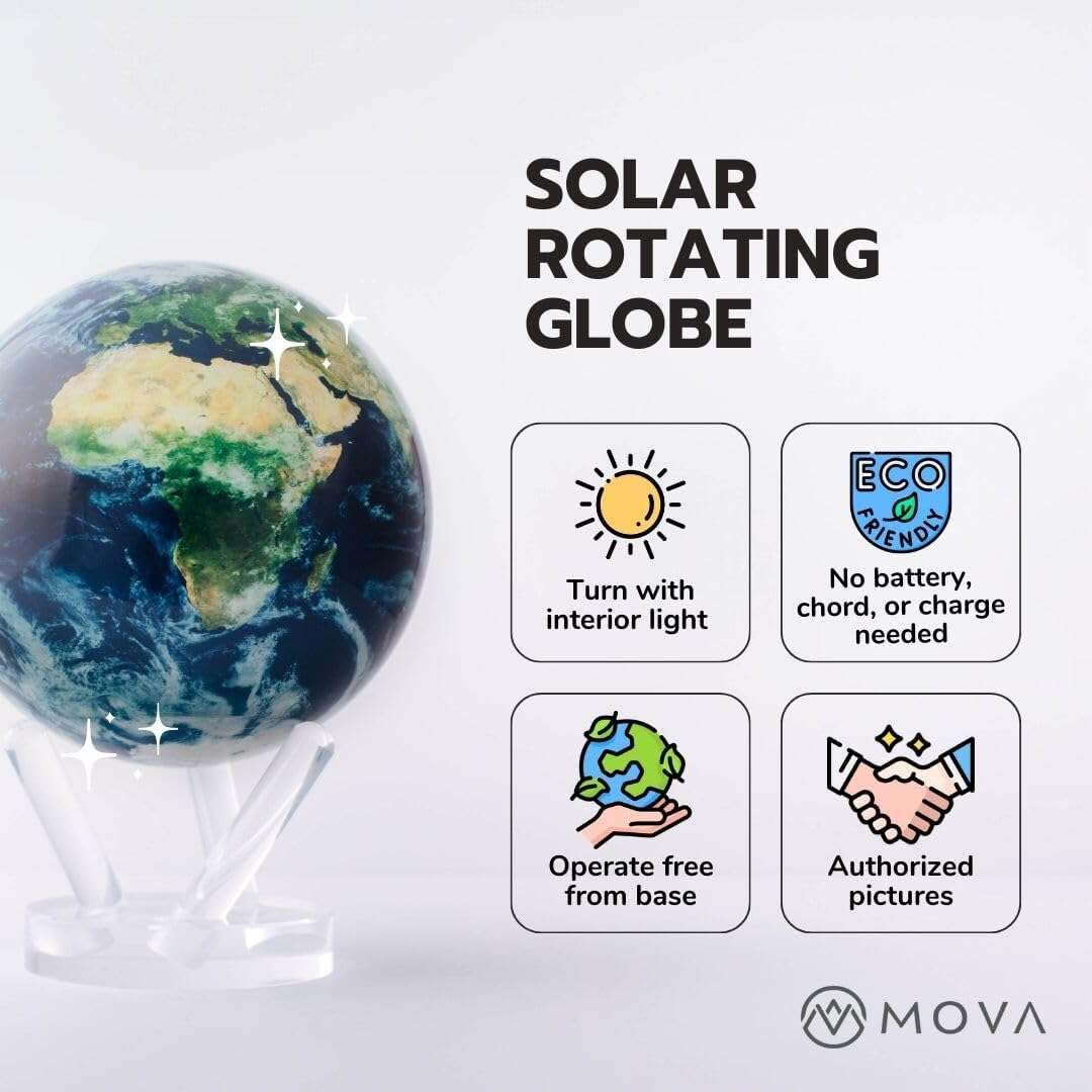 MOVA 4.5" Self-Rotating Globe Earth with Clouds, Light Powered