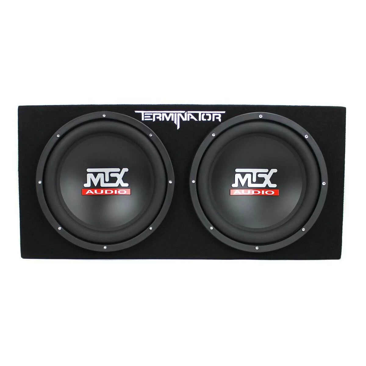 MTX TNE212D 12-Inch 1200-Watt Dual Loaded Subwoofer Box Enclosure 1200 watt of max power, 400 watts RMS Rubber surround Polypropylene cone MTX audio logo on dustcap 2 inch aluminum single 4 ohms voice coil 48 ounce magnet Final impedance: 2 ohms Frequency response: 37 150 Hz 5/8 inch solid MDF construction Black carpeting covering the enclosure Terminator logo embroidered into carpet front Dimensions: 29.69 x 13.5 x 11.125 x 14 inches Manufacturer warranty: 1-year warranty Part number: TNE212D Quantity: 2 Planet Audio AC1500.1 1500-Watt Monoblock Amplifier 1500 watts of max power RMS power: 563 watts x 1 channel @ 2 ohms; 1125 watts x 1 channel @ 4 ohms Continuously variable low pass crossover Selectable bass boost (0 to +18 dB) Switchable Input sensitivity: 100mV 2V or 2V 8V Switchable phase shift (0 180 degrees) Low level inputs and outputs Power and protection LEDs Heavy duty set screw style terminals Chrome plated connections Signal to noise ratio: 102 dB Frequency response: 20 20KHz Remote control included Dimensions: 10 x 10 x 2.1875 inches Manufacturer warranty: 2-year warranty Part number: AC15001M Quantity: 2 Soundstorm 8-Gauge Complete Amplifier Wiring Kit with RCA 20 foot 8 gauge red power cable Competition high quality fuse holder 0.25 inch gold plated ring terminal 3 foot 8 gauge black ground cable Number 10 gold plated ring terminal 16 foot 18 gauge blue turn on wire 20 foot high performance RCA interconnect 3 rubber grommets 30 foot speaker wire 0.3125 inch gold plated ring terminal 20, 4 inch wire ties Manufacturer warranty: 1-year warranty Part number: AKS8