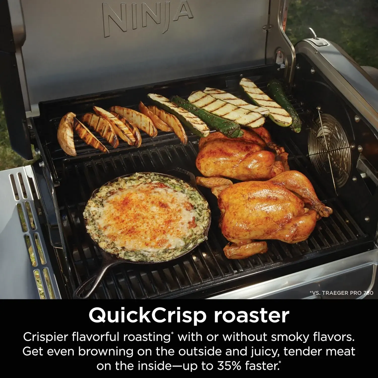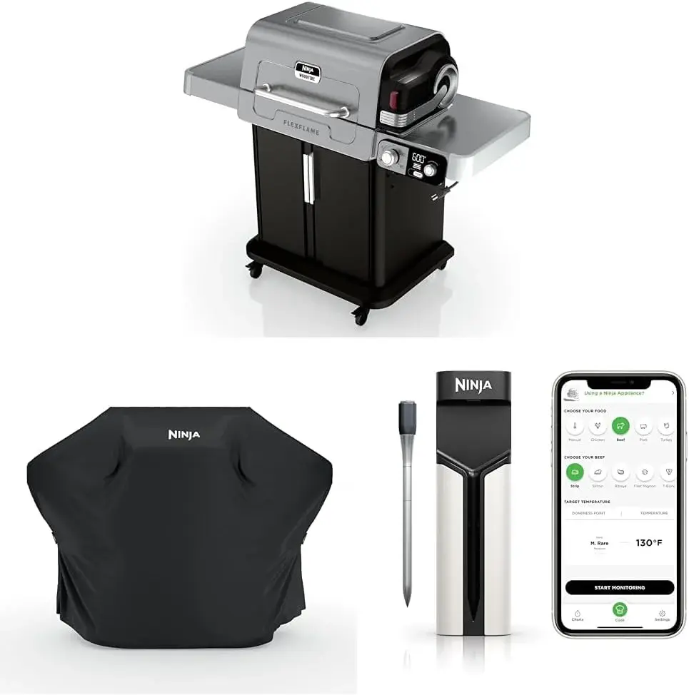 • Ninja FlexFlame, Grill and Smoker, Electric and Propane Grill, Roaster, BBQ Grill, 5-in-1 Cooking System, 3 Burner, Digital Control, Outdoor Cooking, Griddle, Pizza Maker, Stainless Steel, PG301
