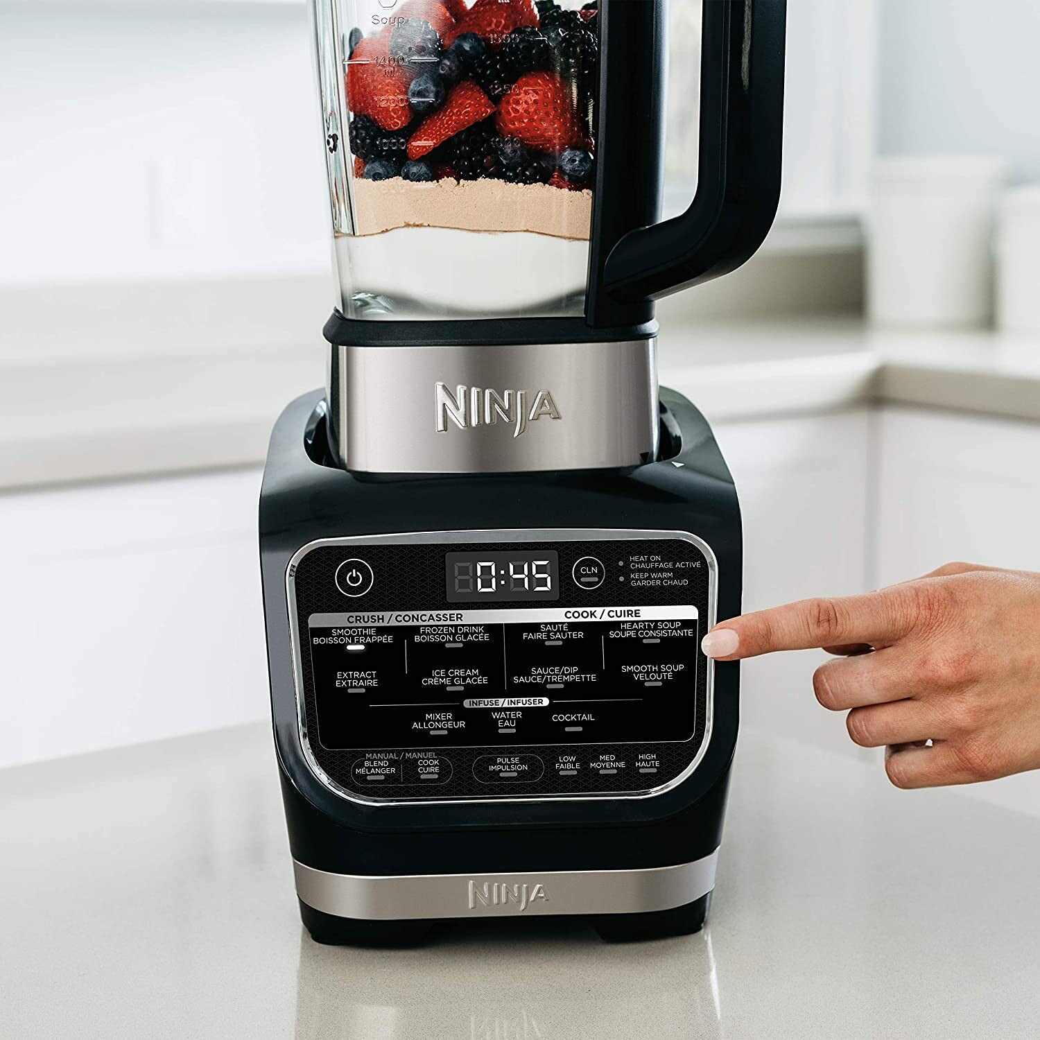 • Ninja Foodi Cold & Hot Blender With 1400 Peak Watts Nonstick Glass Pitcher (HB152), 64 oz, Black