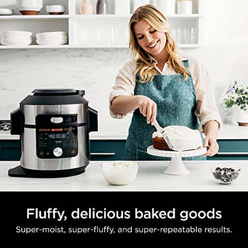 • Ninja OL701 Foodi 14 in 1 SMART XL 8 Qt. Pressure Cooker Steam Fryer with SmartLid & Thermometer Auto Steam Release, that Air Fries, Proofs & More, 3 Layer Capacity, 5 Qt. Crisp Basket, Silver/Black