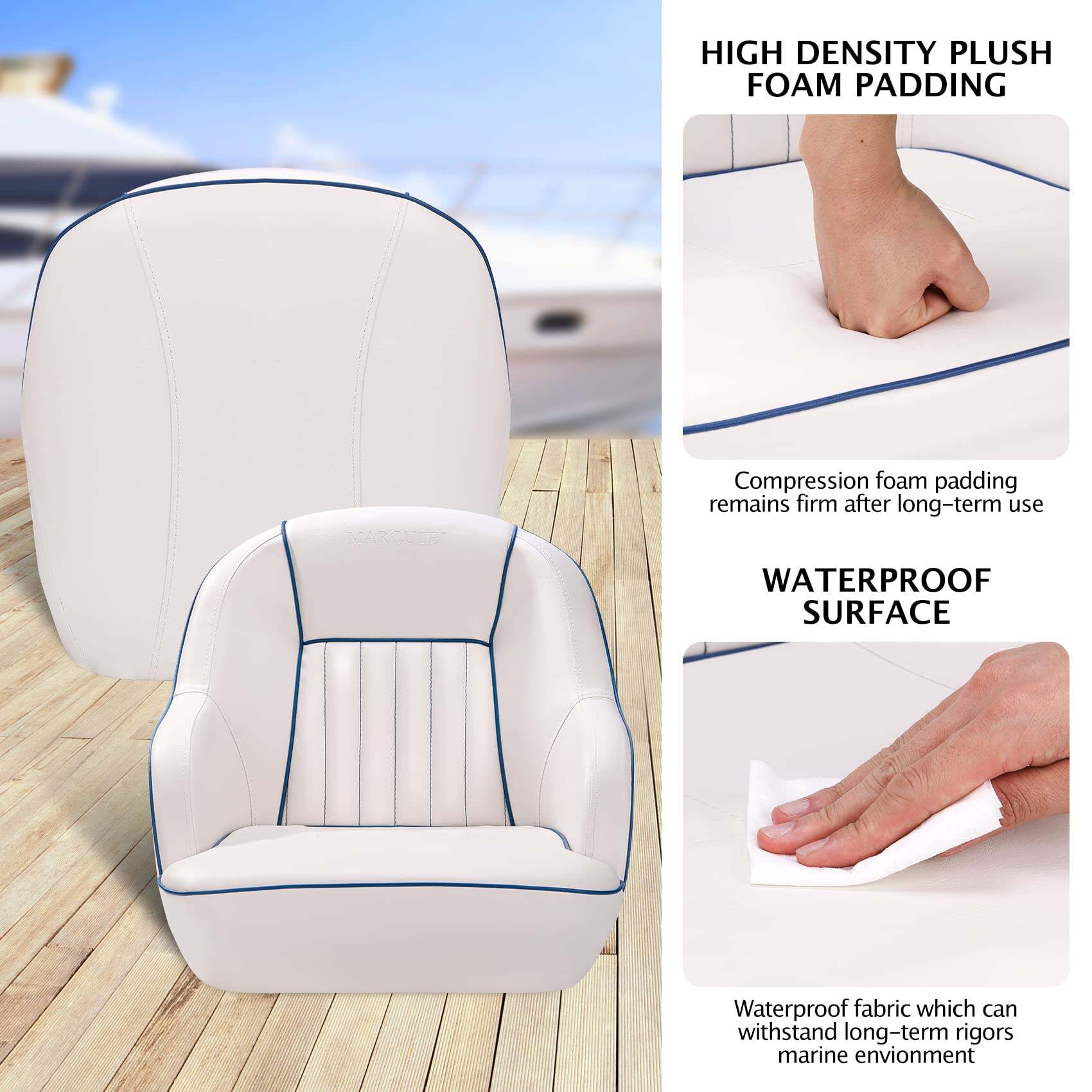 With its sleek white and blue design, the Pontoon Boat Seat adds a touch of elegance to your boat’s interior while providing unparalleled comfort for long days on the water.