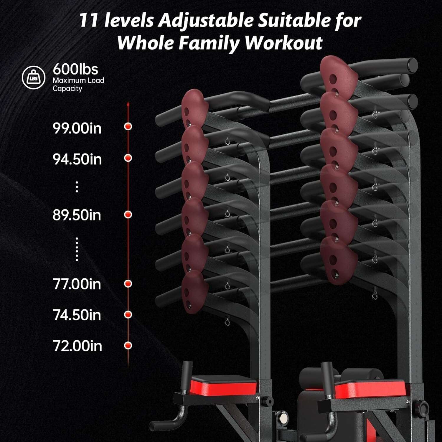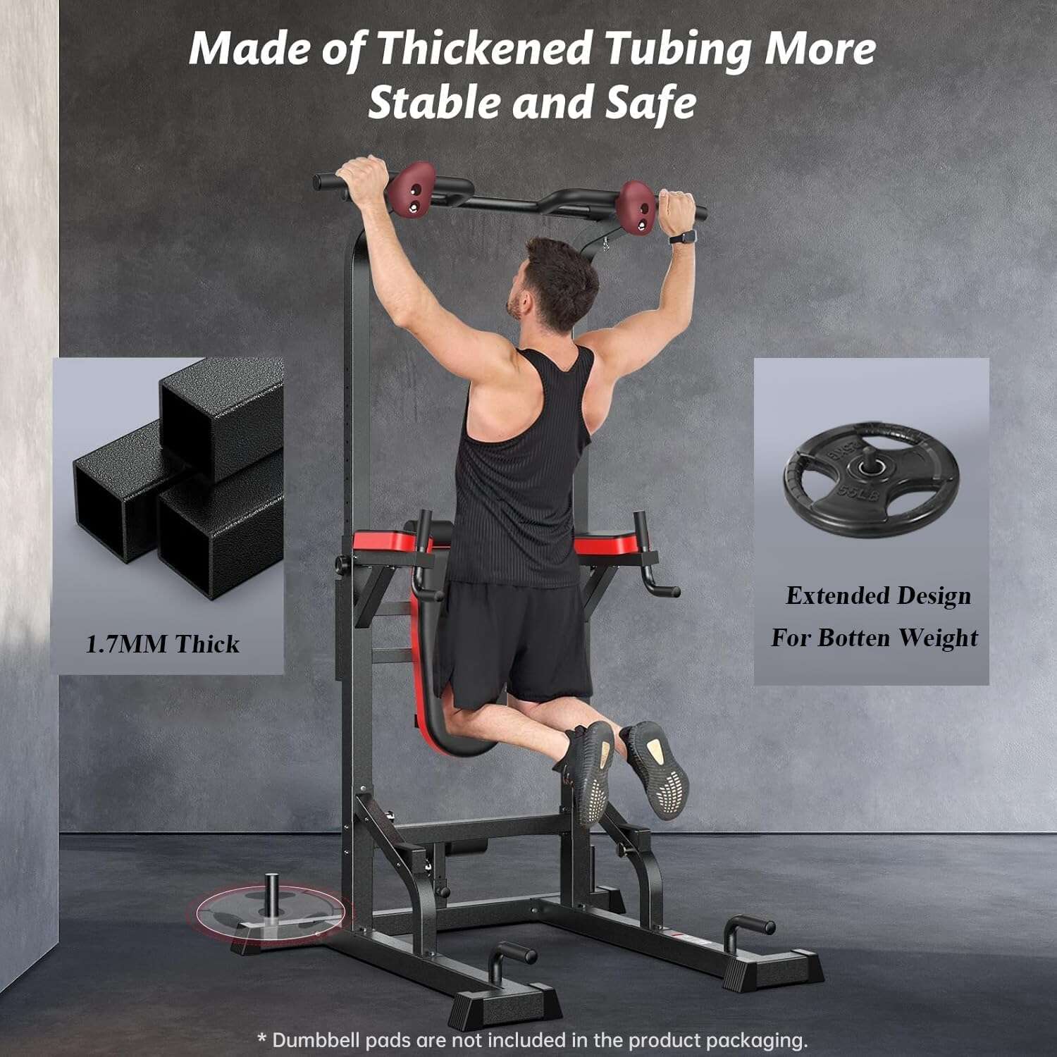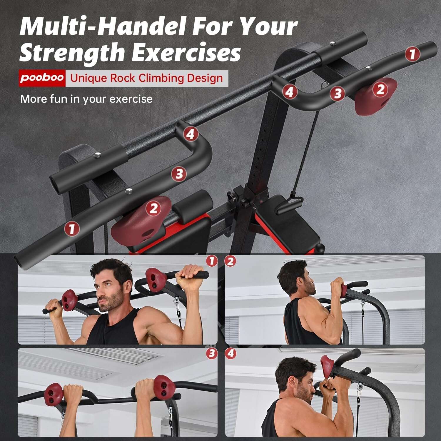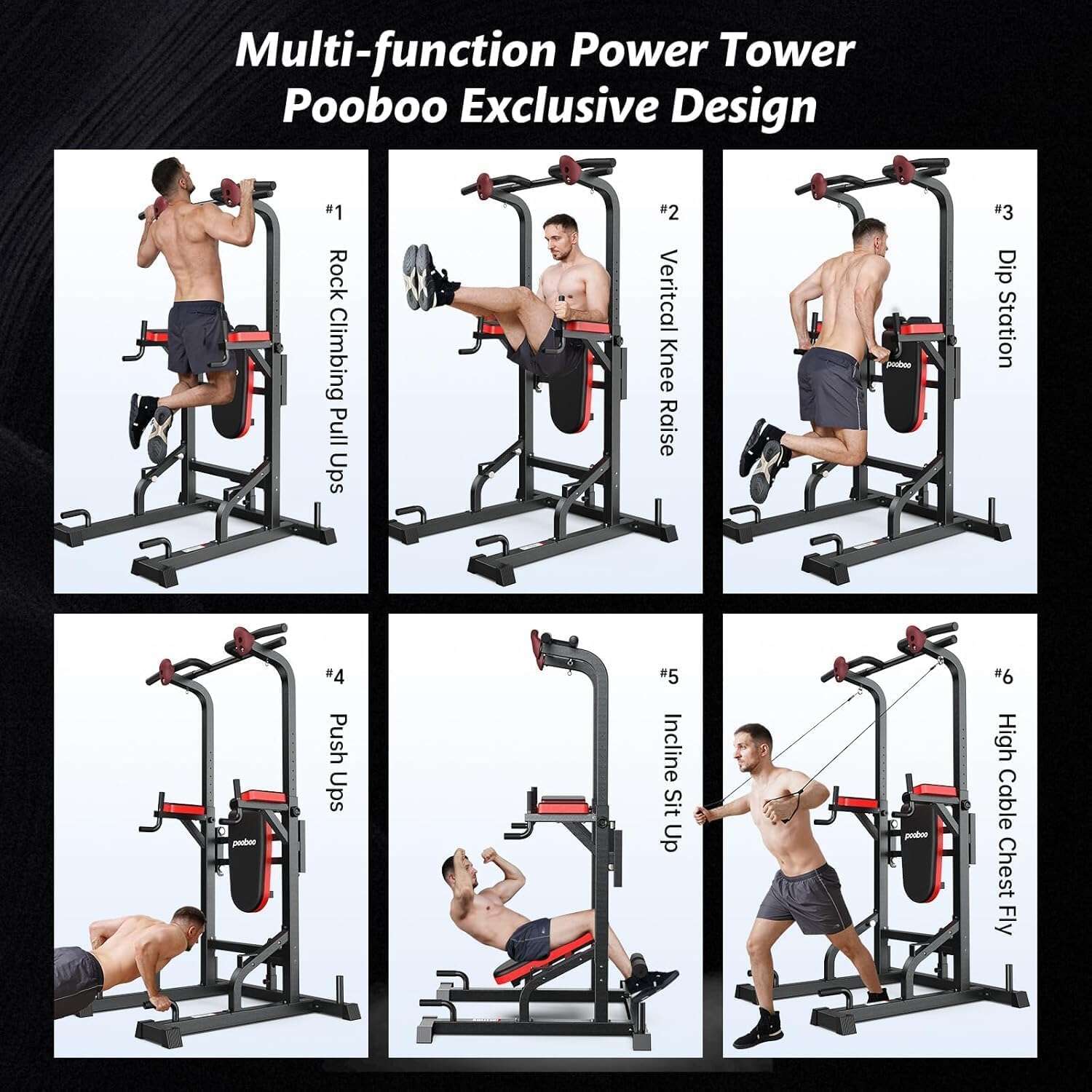 Pooboo Power Tower Dip Station, Pull-Up Bar, Supine Board, Adjustable