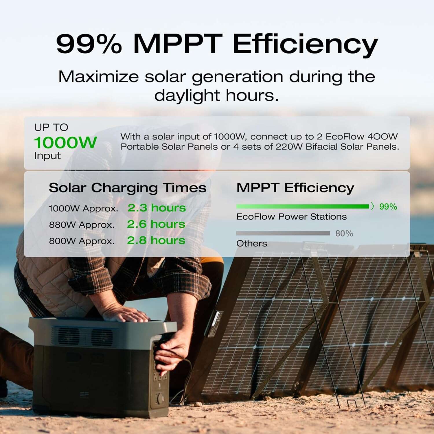 - Fast solar charging — compatible with multiple solar panels for off-grid use